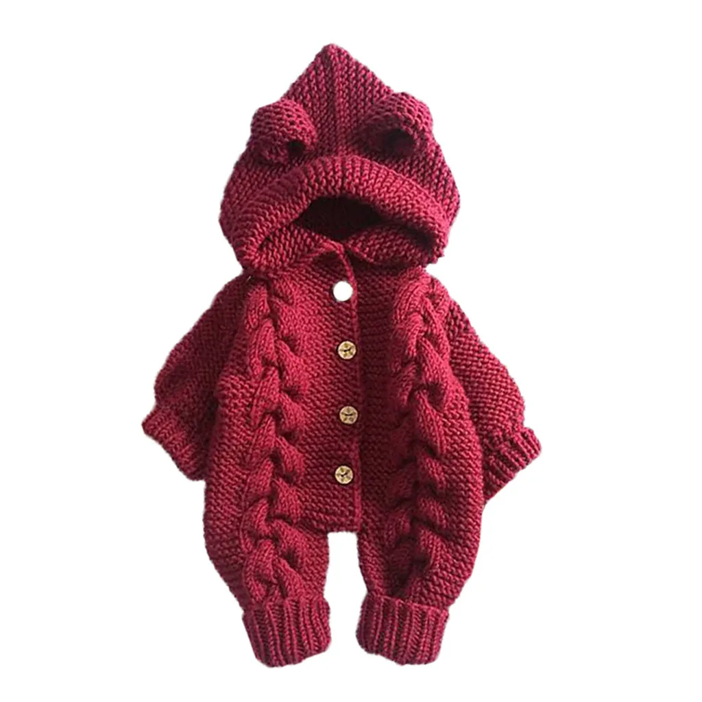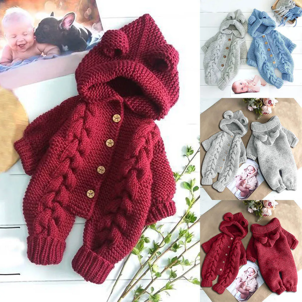 Комбинезон для новорожденных мальчиков и девочек, зимняя теплая трикотажная одежда, комбинезон с капюшоном для малышей, 2019