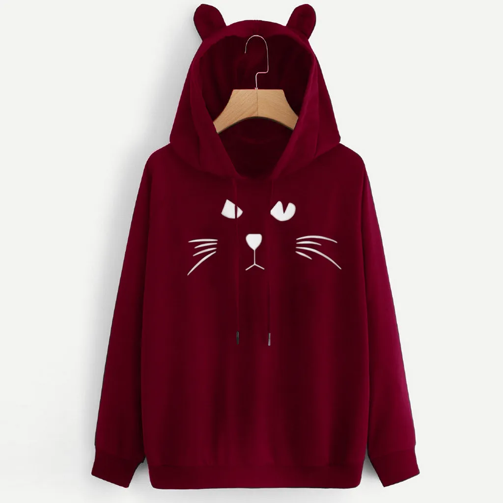 Модная женская толстовка с капюшоном с кошачьими ушками, Повседневный пуловер, топы, толстовка