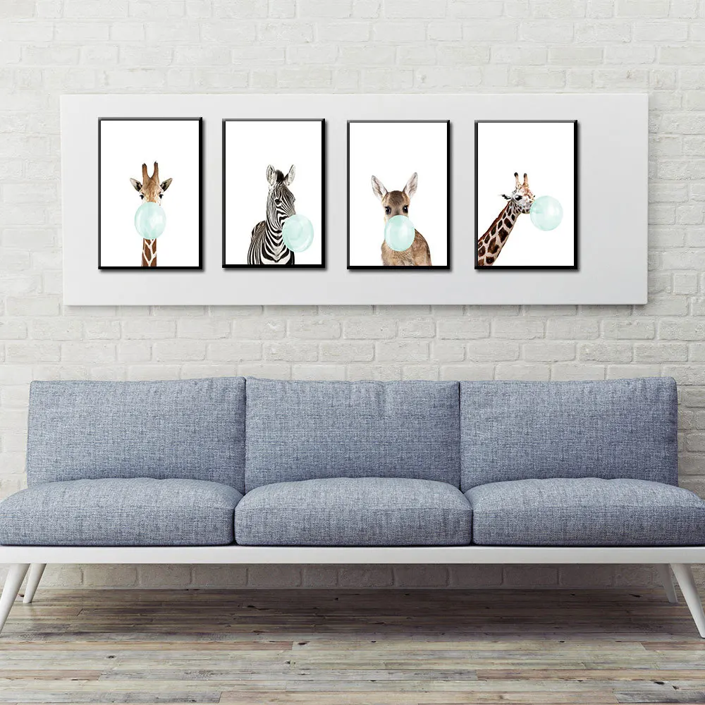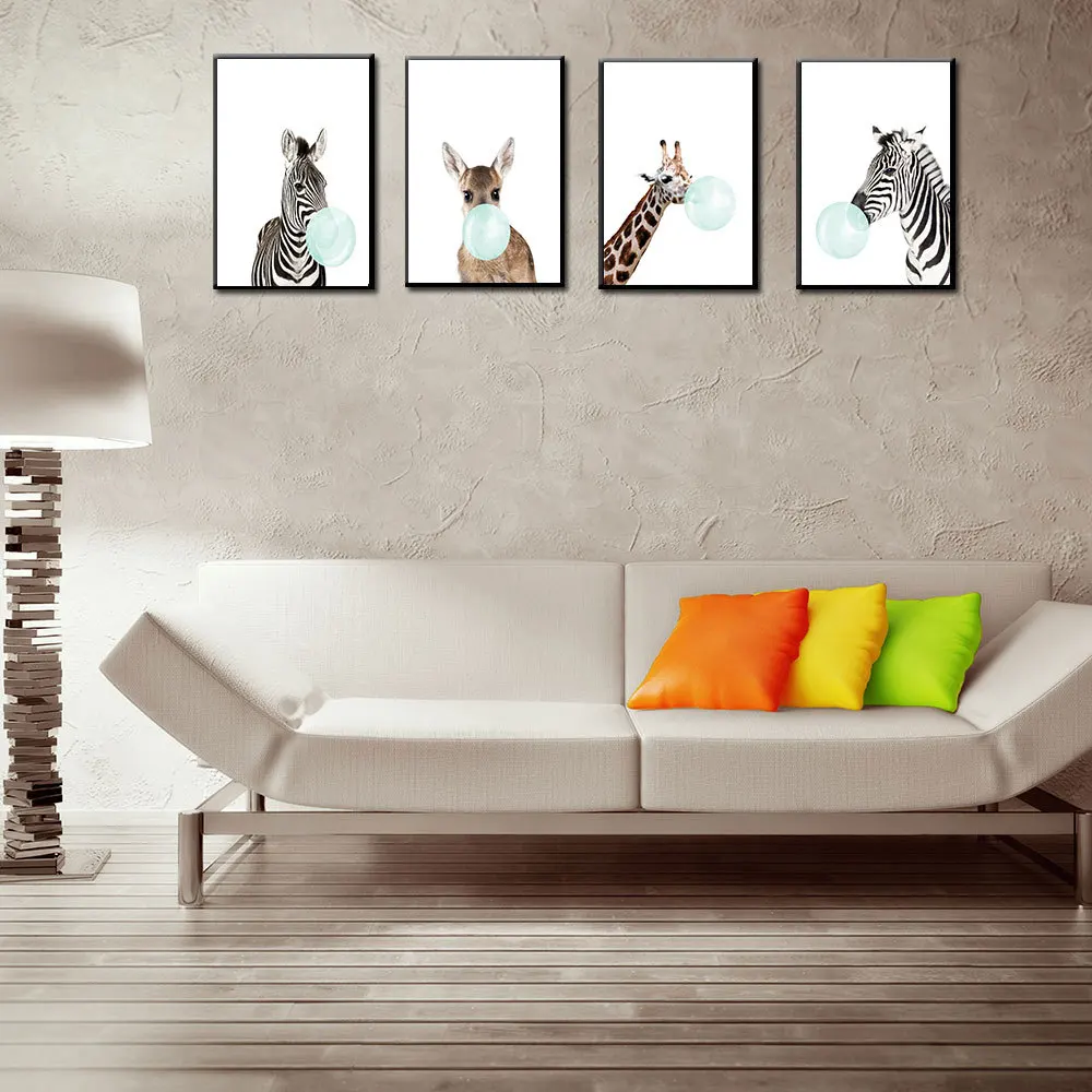 Домашний постер с изображением животных зебры жирафа, холст, Детская настенная художественная картина, Скандинавское изображение, украшение для детской спальни