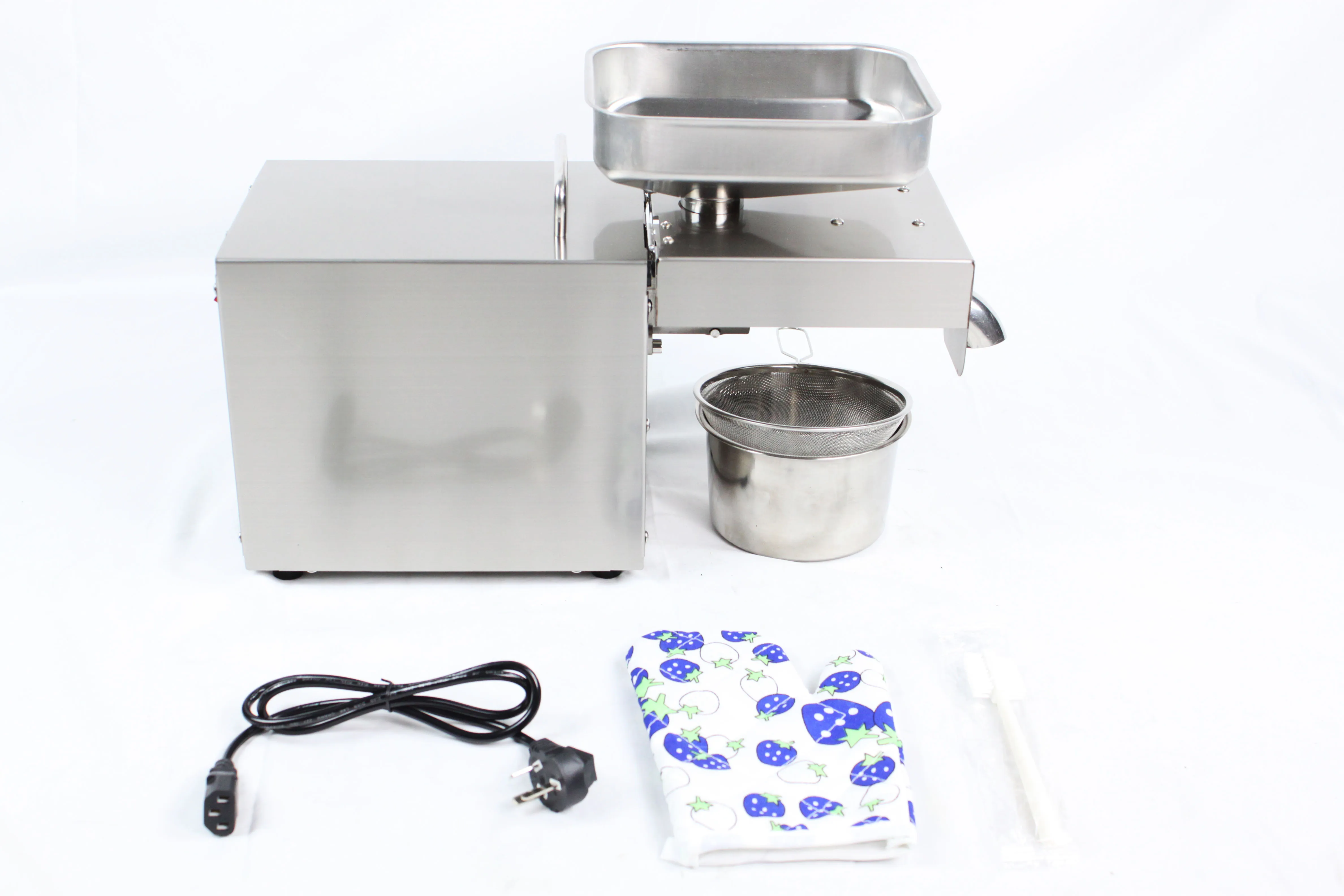 Параметры изделия Название продукта: полностью автоматический бытовой Масляный Пресс из нержавеющей стали Назначение: экстракт масла Мощность: 501 Вт (включено) - 800 Вт (не включено) Материал корпуса: нержавеющая сталь Емкость: 801 мл (включено) -1000 мл (включено) Максимальный одноразовый выход масла: 1001 мл (включено) - 1500 мл (включено) Форма отверстия для подачи: квадратная Характеристики продукта: 220 В ГБ, европейский стандарт 220 В, американский стандарт 110 В, британский стандарт 220 В
