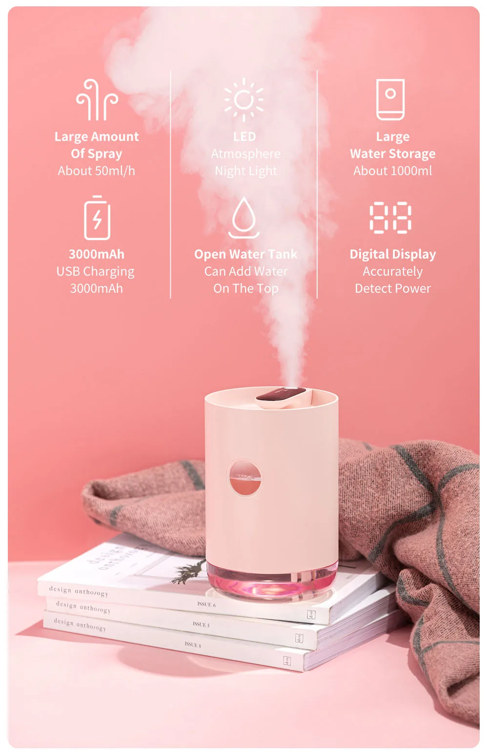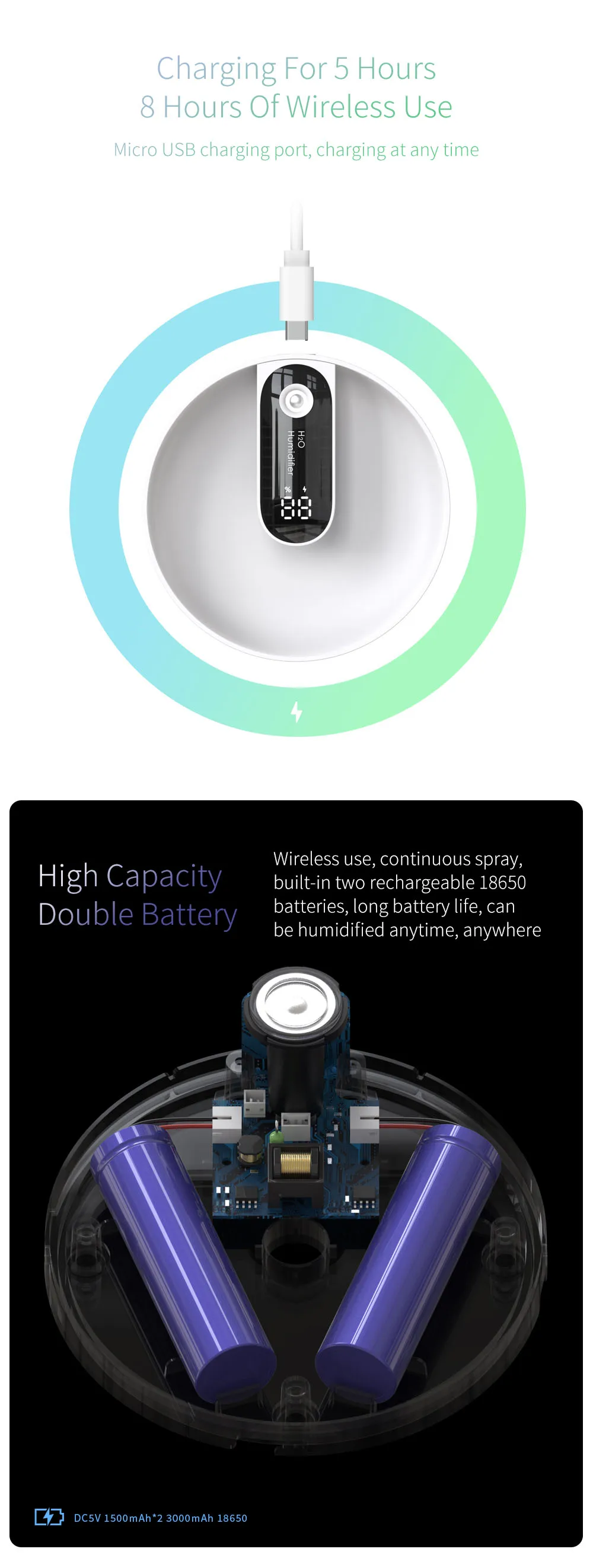 Беспроводное использование, непрерывный спрей, встроенный аккумулятор 18650, длительный срок службы батареи, может быть увлажнен в любое время и в любом месте