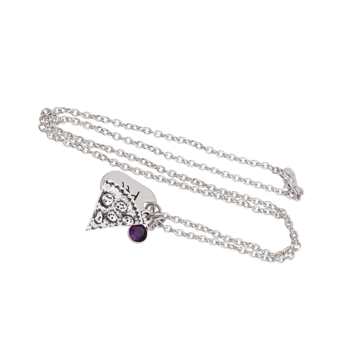 Fashion Personality Pizza Pendant Diamond Pendant Alloy Sweater Chain for Girls Friends (Purple)