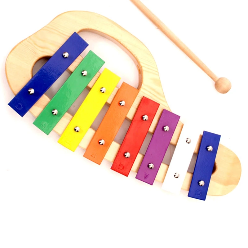 Ручная, ударная ксилофон Glockenspiel с молотками 8 тонов цветной металлический бар деревянный музыкальный инструмент дошкольного образования игрушка
