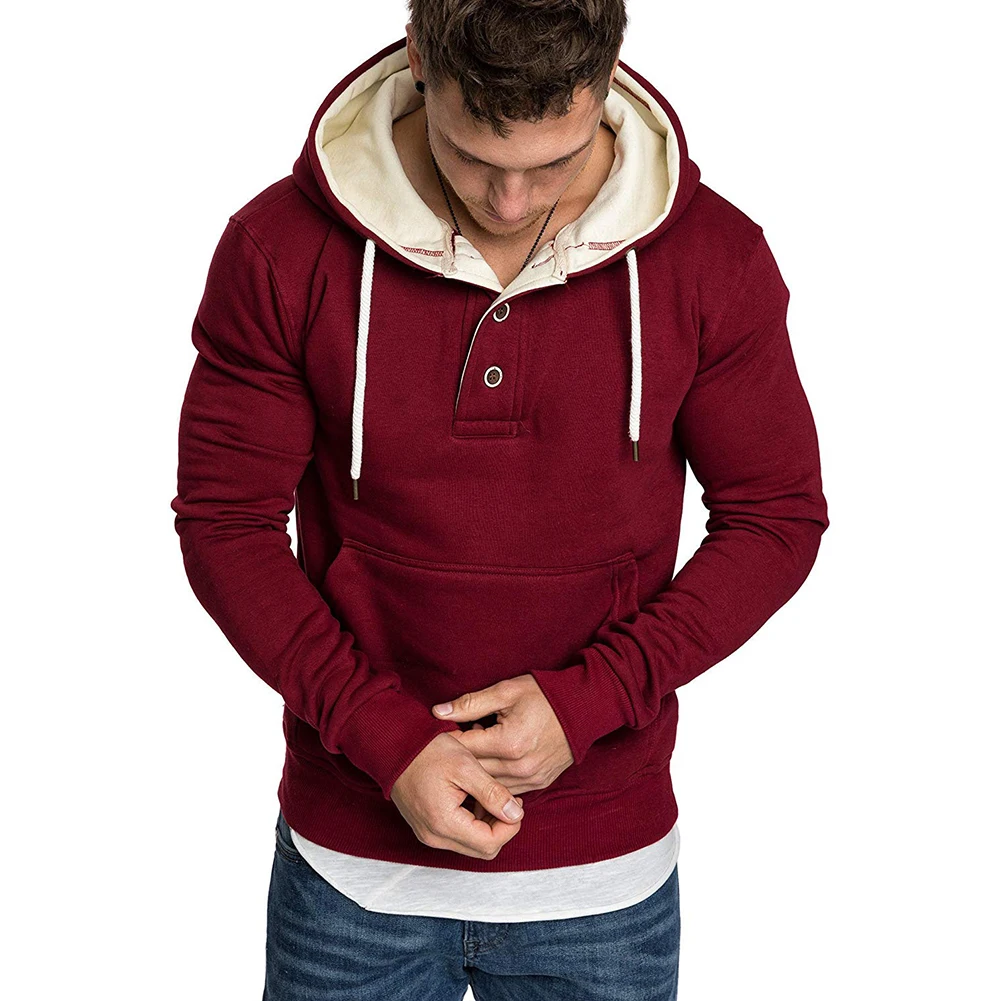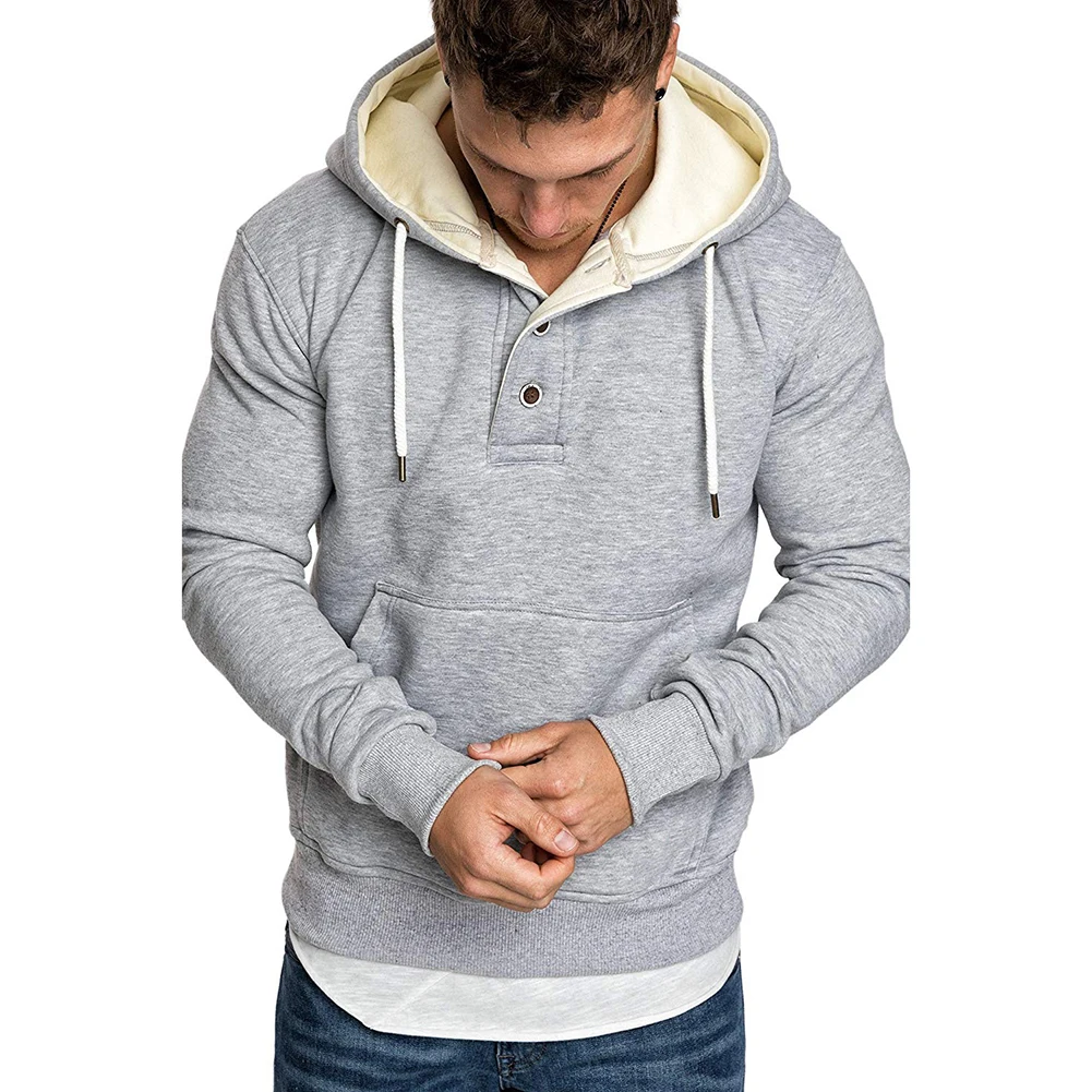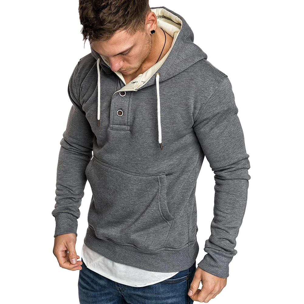 Модная мужская Свободная Спортивная толстовка с капюшоном с длинным рукавом и карманами на пуговицах