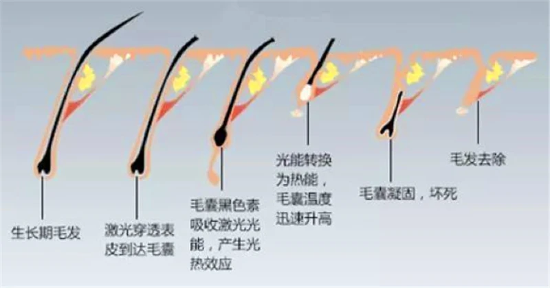 Поскольку в волосяном фолликуле черных волос есть меланин, в области волос используется свет волны меланина. Меланин в волосяном фолликуле можно обжарить,