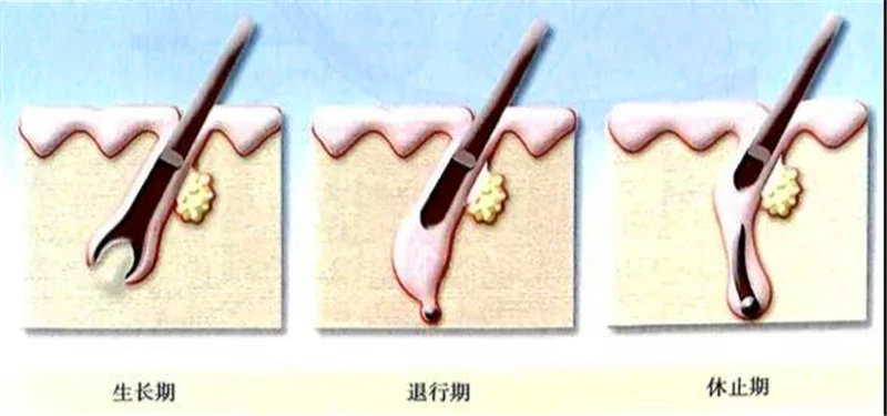 Фаза роста (3 года), период рецессии (3 недели) и период отдыха (три месяца).Волосы растут после трех циклов роста. Волосы каждой части не растут и не выпадают одновременно, но они существуют в три периода одновременно.