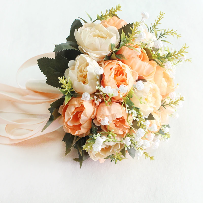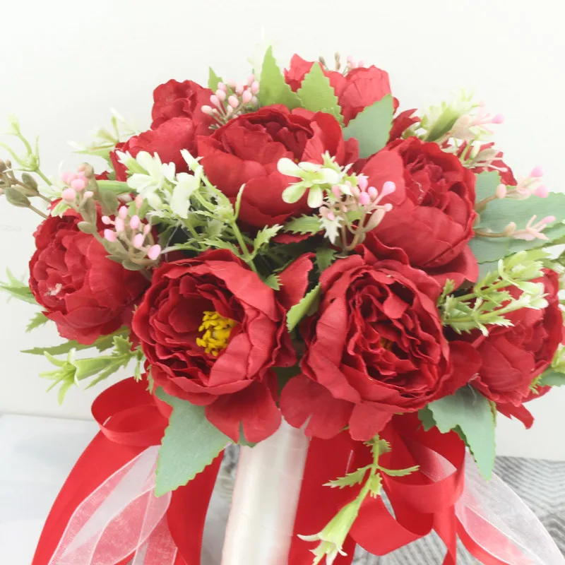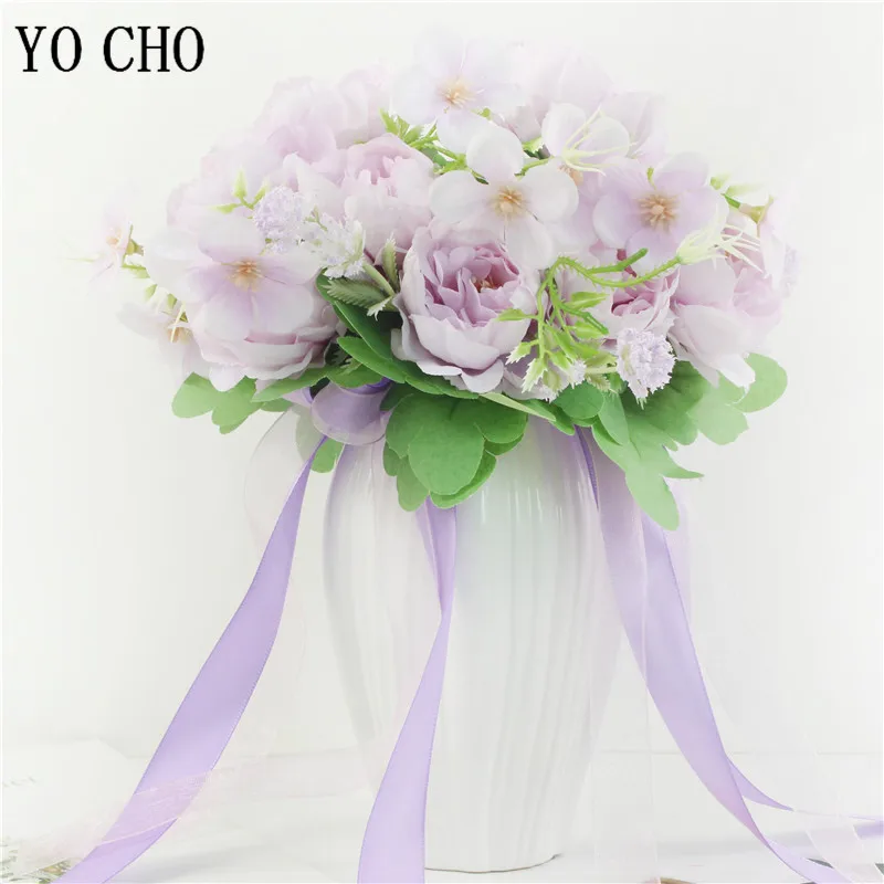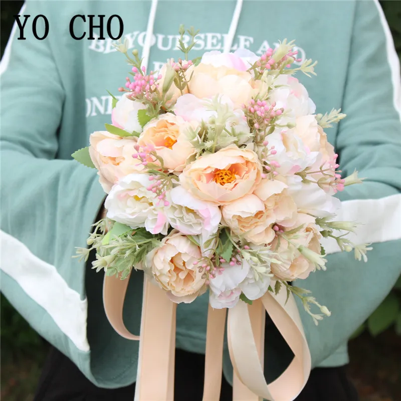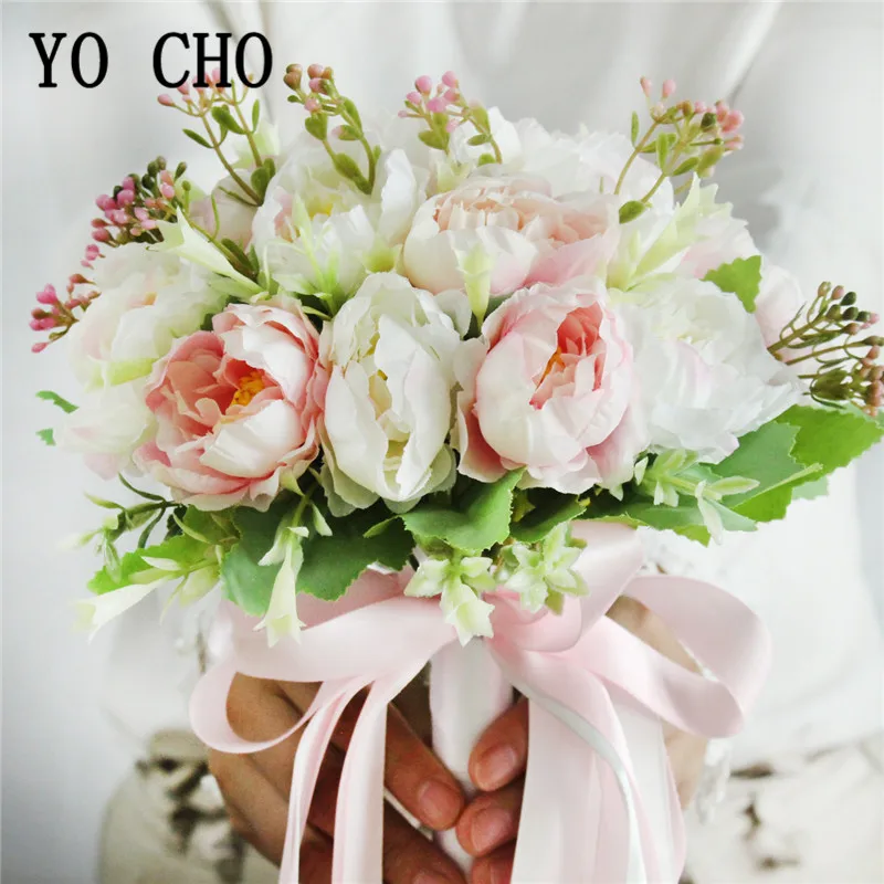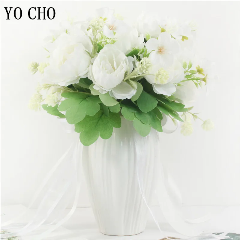 YO CHO Artificial Flower Wedding Bouquet Bridal Bouquet Holder White Silk Peony Wedding Bouquets for Bridesmaids Bouquet Mariage