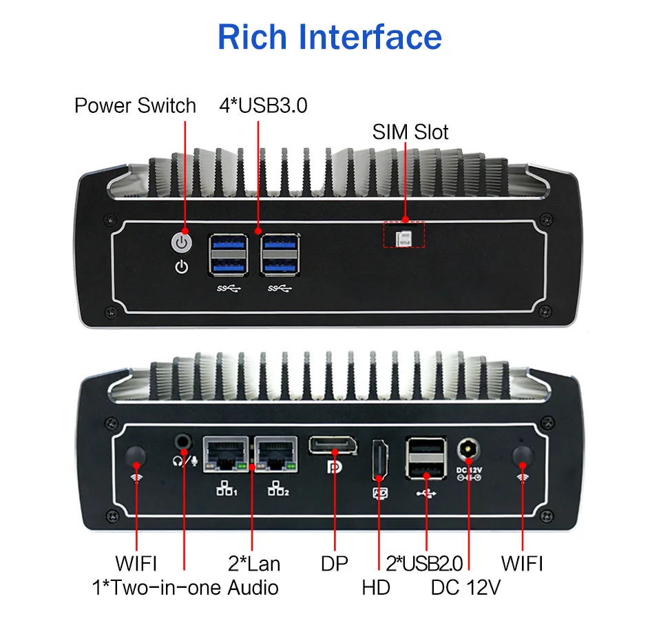 Поддержка 1 * Mini-PCIE (Поддержка WiFi/3G/4G), слот для внешней sim-карты