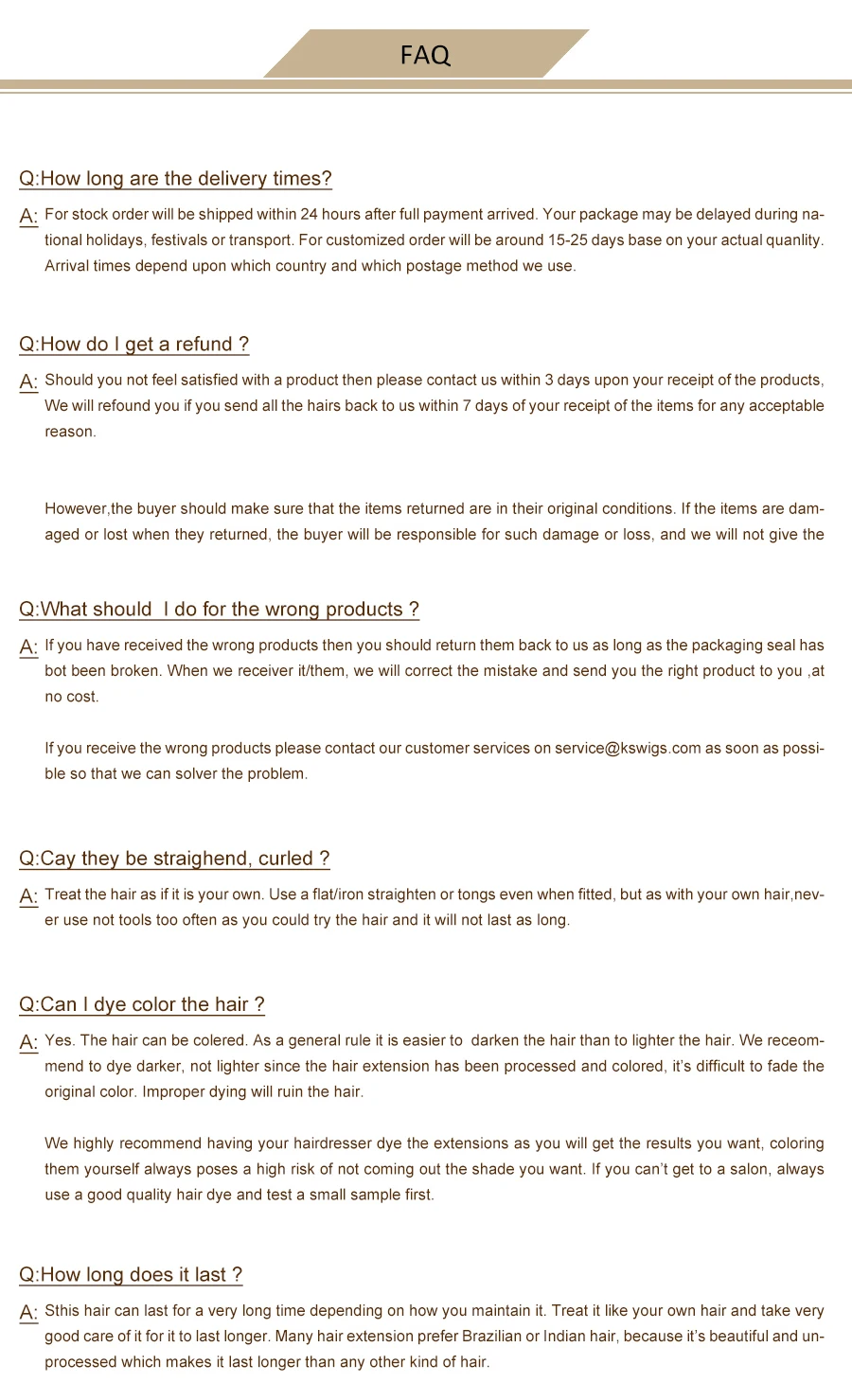 Если вы получили волосы неправильного цвета, неправильной длины, вы можете связаться с нами напрямую, мы постараемся сделать все возможное, чтобы помочь вам решить проблему, пожалуйста, не оставляйте плохой отзыв, заранее спасибо!