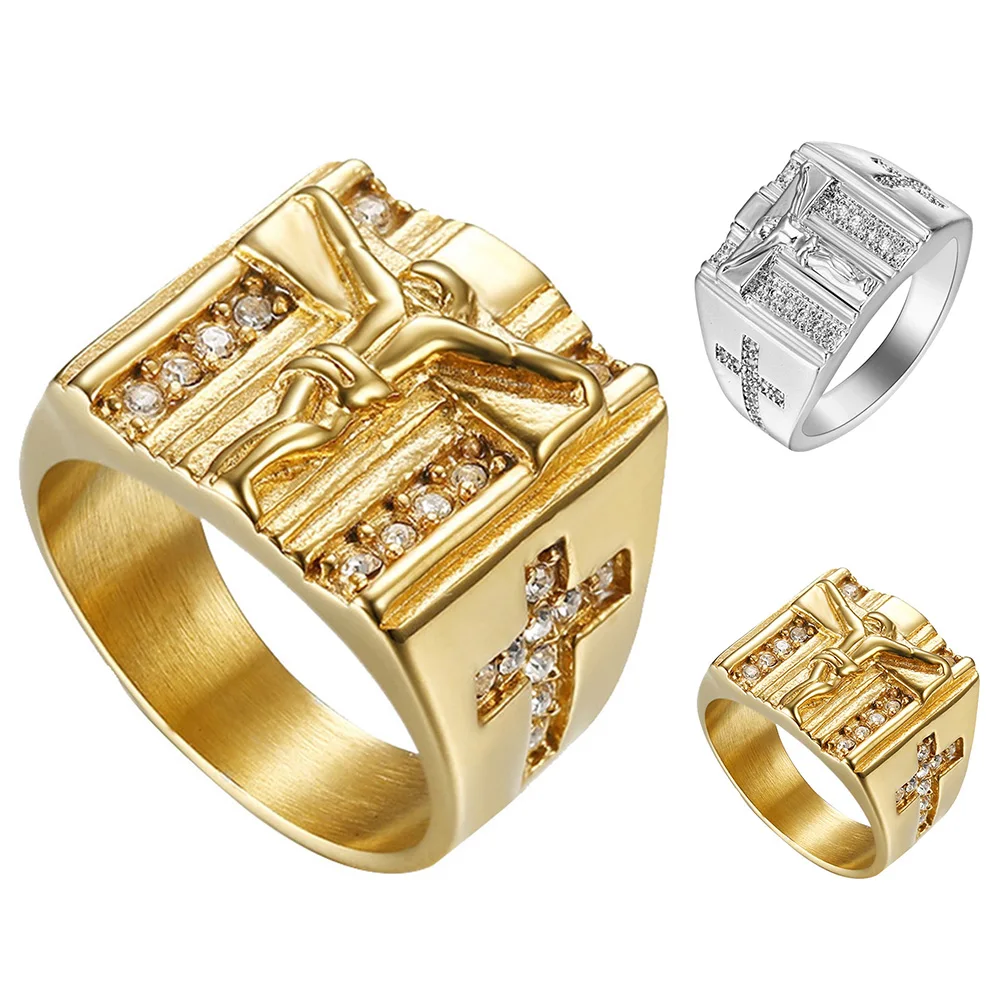 Унисекс кольцо шикарное с изображением Иисуса Креста резное кубическое циркониевая инкрустация кольцо унисекс Свадебные ювелирные изделия подарок новые женские аксессуары