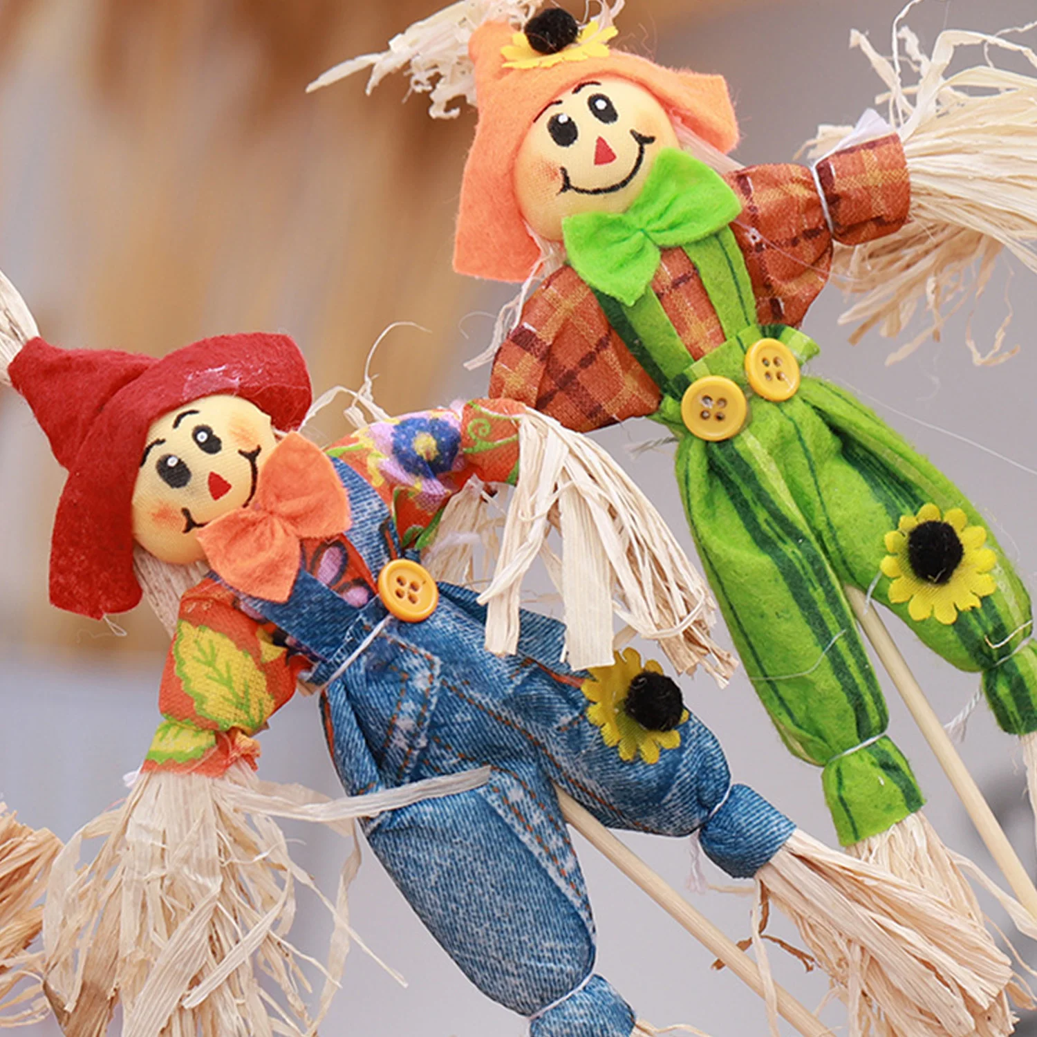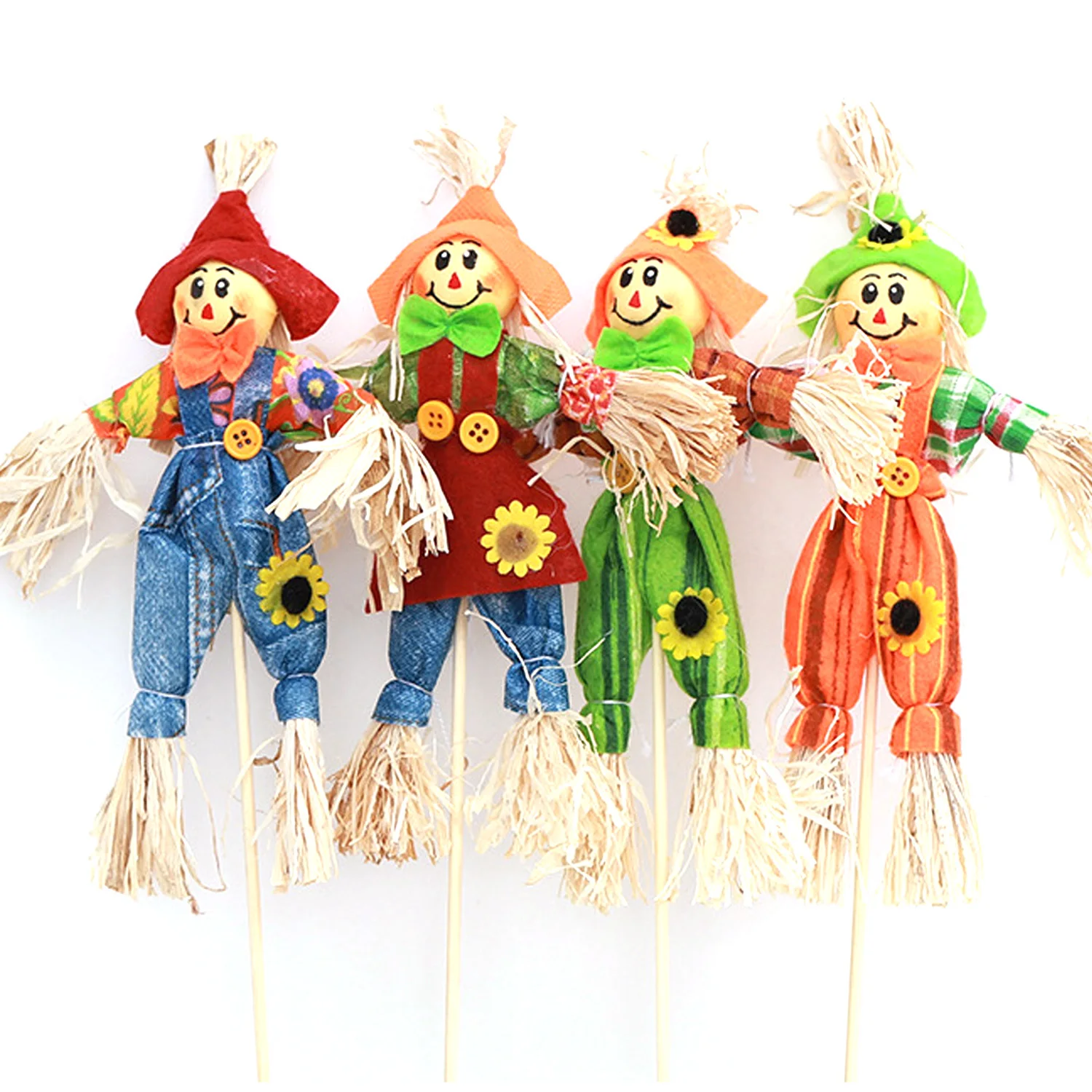 Обратите внимание: каждая пугала высотой 13,39 дюйма, включая бамбуковую стойку, Длина корпуса составляет около 8,5-10 дюймов, они очень маленькие пугала, отлично подходят для украшения осеннего урожая