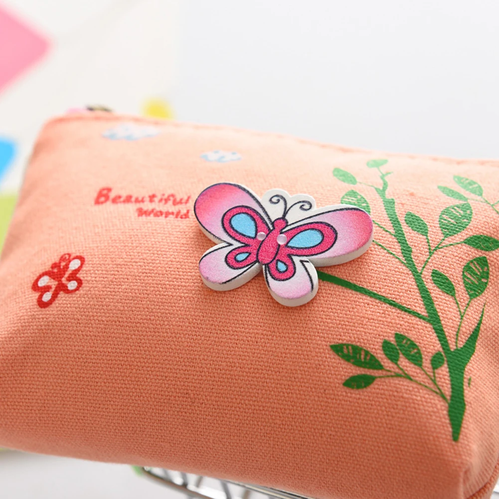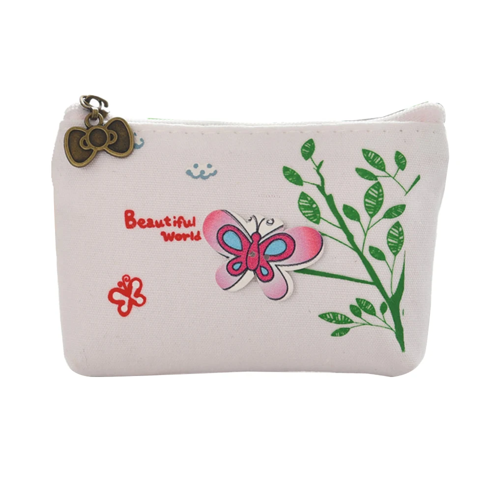 Милый холщовый Кошелек для монет с бабочкой, держатель для ключей для карт, Женский мини-кошелек на молнии