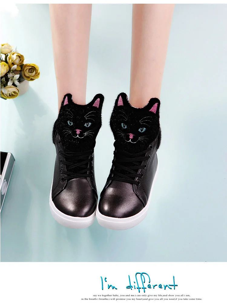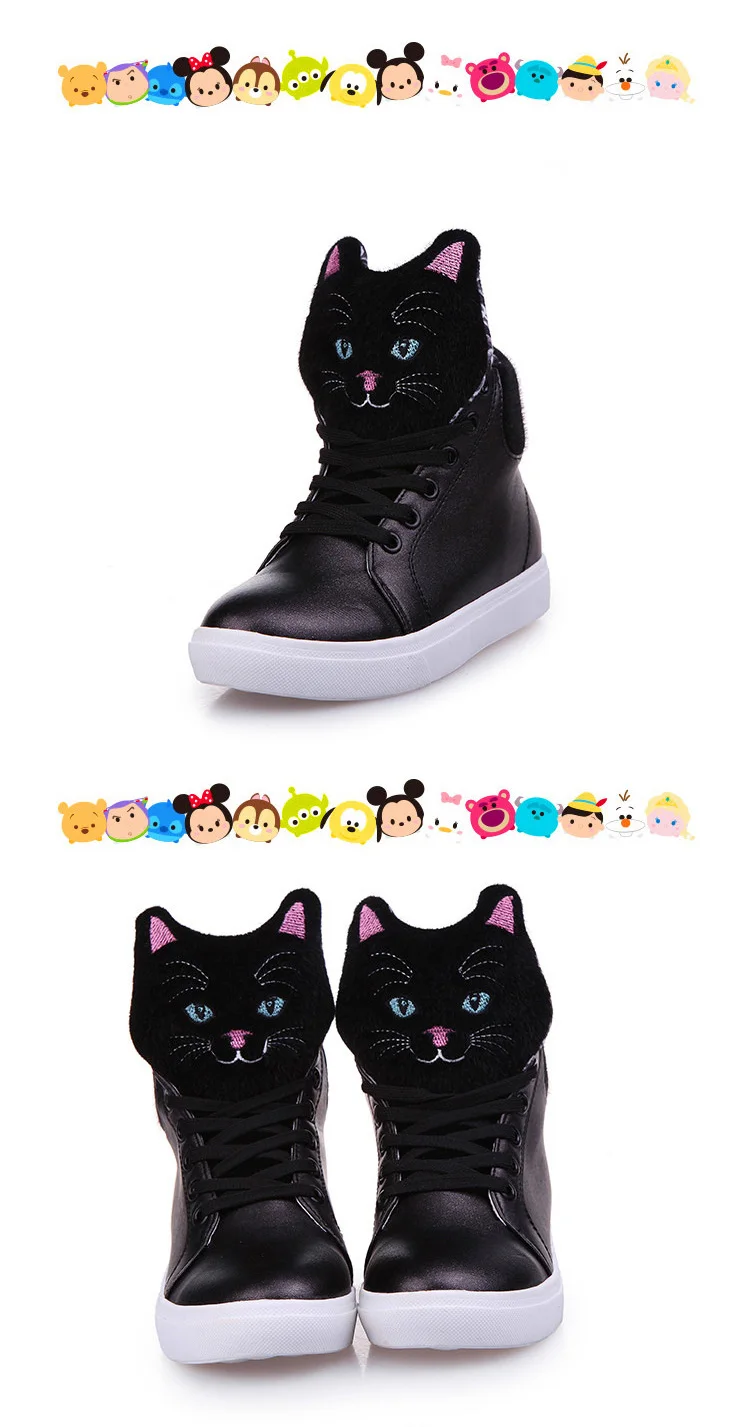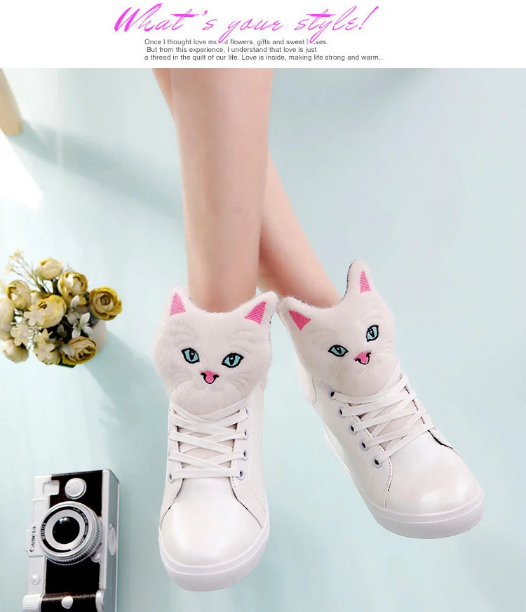 Женские зимние ботинки, на шнуровке, из искусственной кожи, с рисунком кота, на платформе, botas mujer, 2019