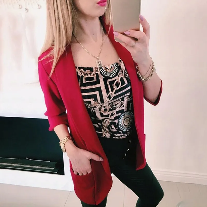 1. Блейзер однотонного цвета с отворотами и тонкий дизайн этого пальто делают вас стройнее и стильно, делая вас выделенными из толпы.