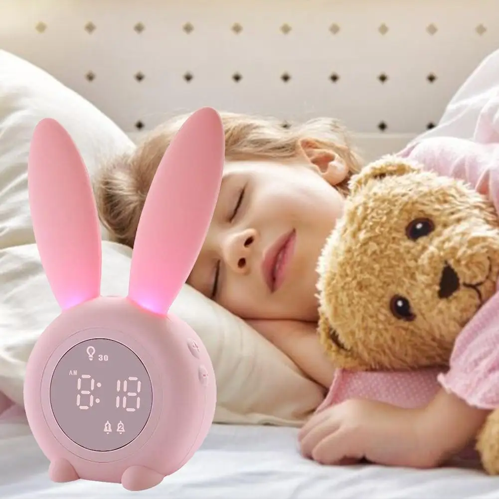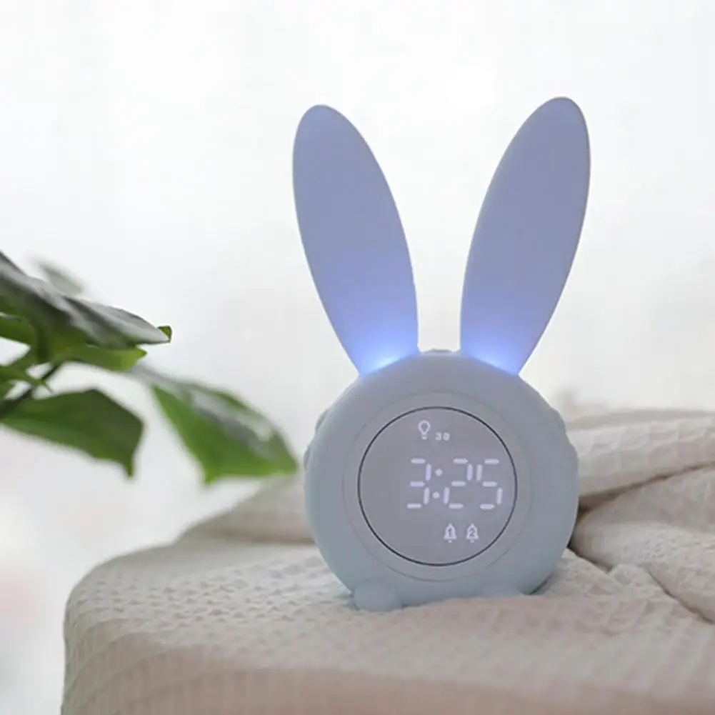 Милый кролик, силиконовый индукционный Ночной светильник, маленький будильник с дисплеем температуры, перезаряжаемая литиевая батарея