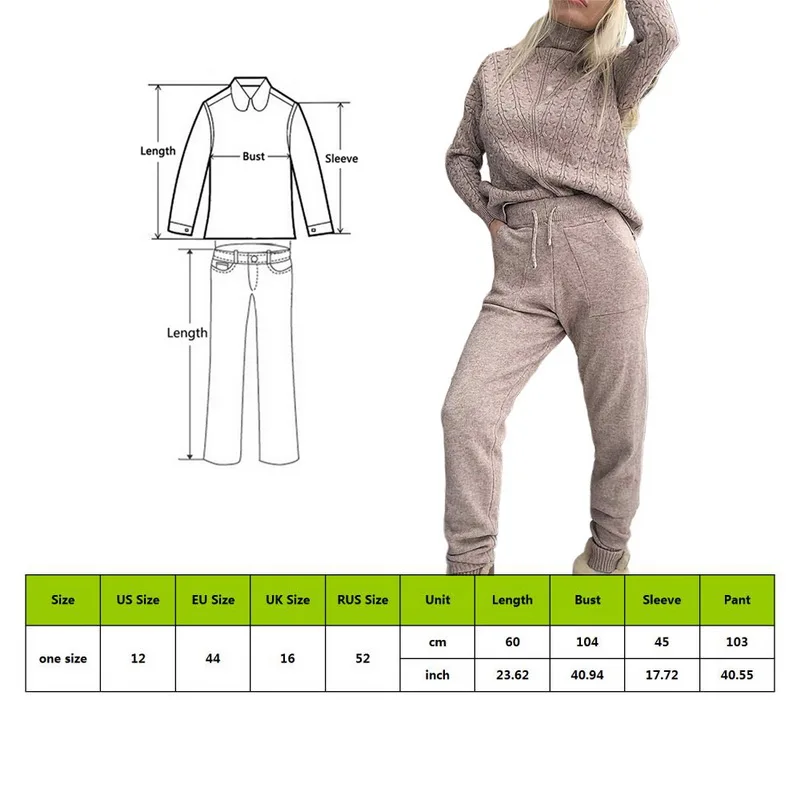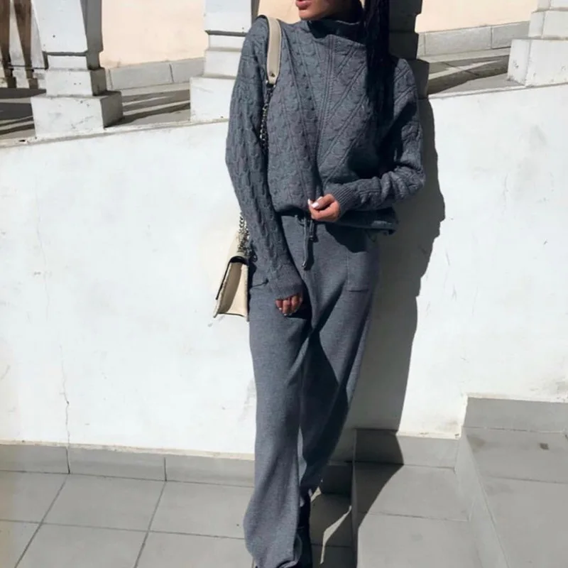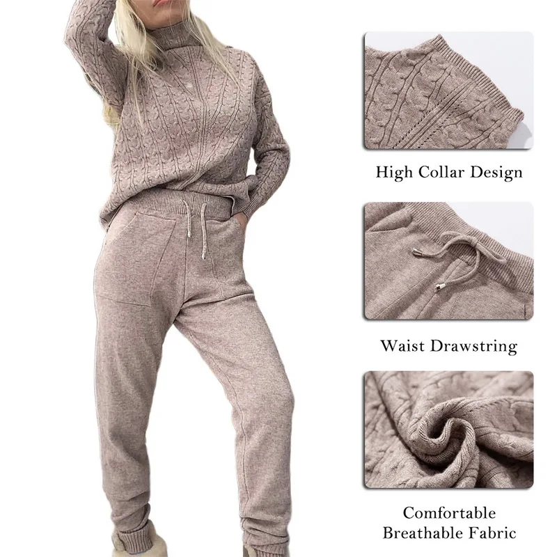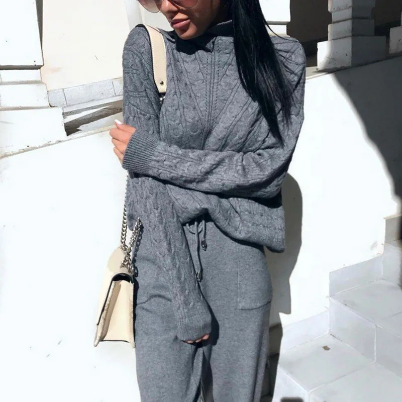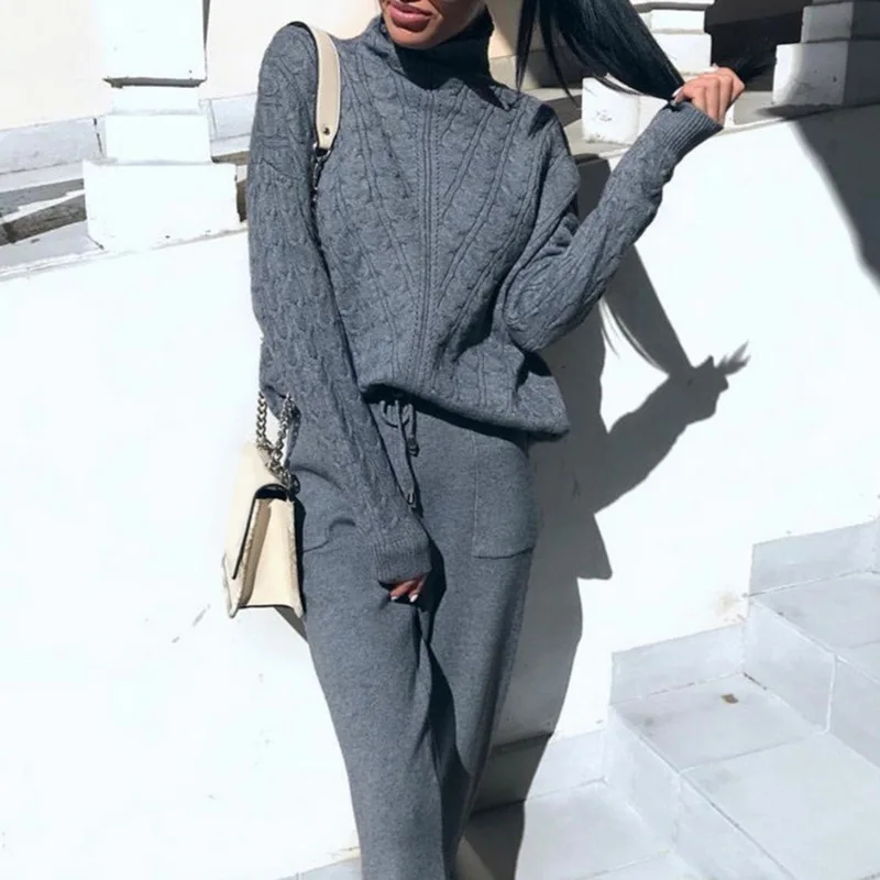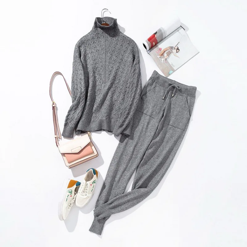 Женские костюмы, шерстяной Теплый вязаный комплект, водолазка, твист свитер + штаны, комплект из двух предметов, женский зимний костюм 2019, женский спортивный костюм