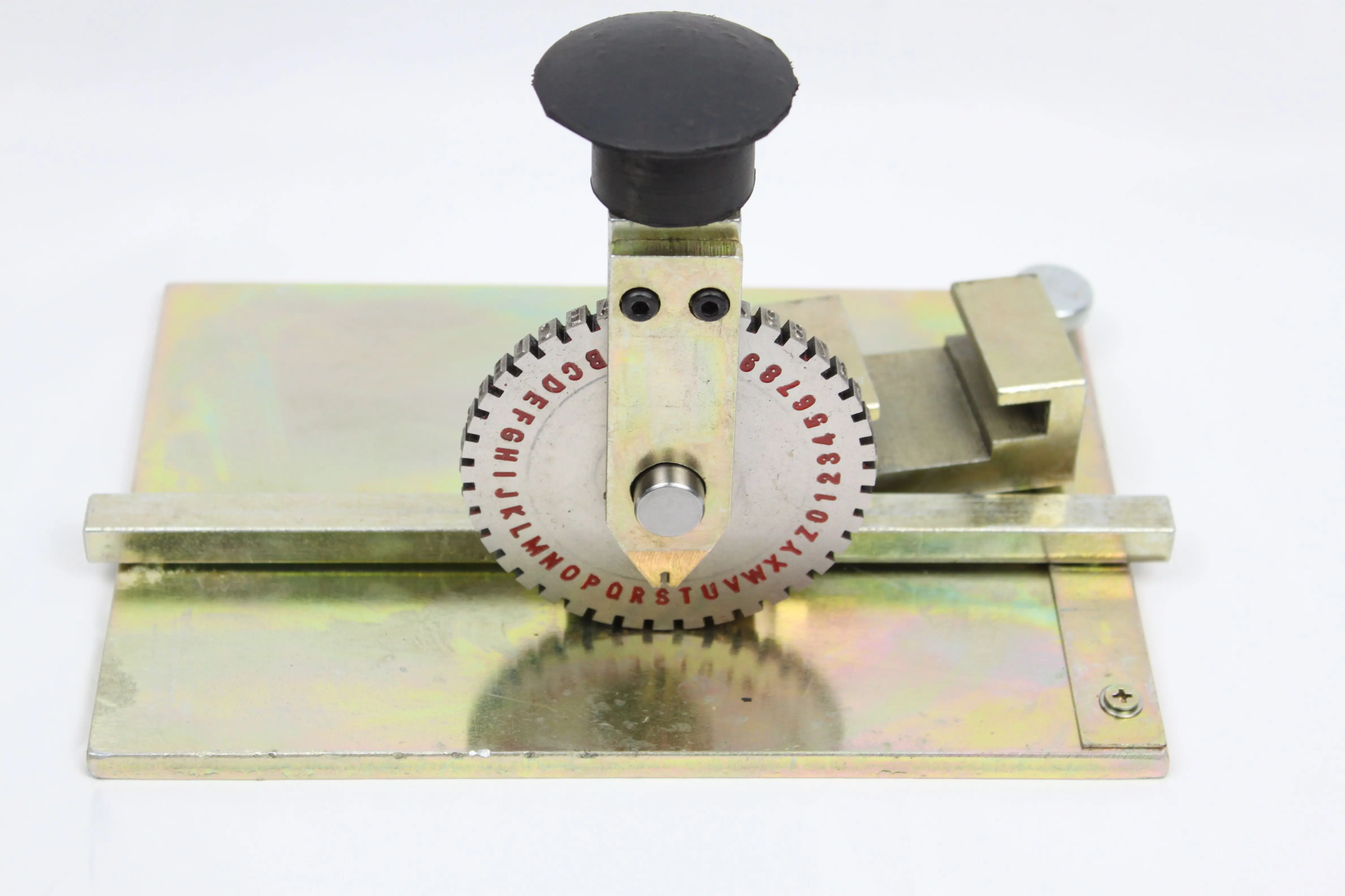 Модель: JTK-508 Тип: печатная машина для печати штампов Направление печати: односторонняя печать Применимая Деталь: плоская Тип упаковки: коробка Степень автоматизации: ручная Стальная пластина: вращающаяся пластина из легированной стали, Термообработанная высокочастотной закалкой, напечатана на определенной глубине (0,1 ∽ 0,3 мм) буквы или номера на металлическом знаке под действием внешней силы (ручным или резиновым молотком); Стальной Циферблат может вращаться в желаемое положение буквы или цифровой автоматической карты, И преобразование слов может быть легко реализовано; Маркировочное положение и расстояние между линиями могут быть вручную отрегулированы механическим механизмом; Различные высоты слов могут быть реализованы путем замены циферблата; длина формы составляет менее 185 мм, а высота-менее 2 мм. Формы могут быть выбиты и выгравированы. Характеристики Универсальная модель имеет преимущества небольшого объема, легсветильник веса, удобного и удобного управления, аккуратной печати и письма, равномерных и четких линий, а также различных размеров шрифтов. Материал стальной пластины; Обмоточная сталь 12 твердость: 58-60HV Прямая: 84 мм внутреннее отверстие: 14 мм № 2; Высота 2 мм, ширина 1,2 мм, ширина зубцов 4 мм, Толщина 6 мм 2,5 № Высота 2,5 мм ширина зубцов 1,4 мм ширина 4 мм Толщина 6 мм Высота № 3, ширина 3 мм, ширина зубцов 1,6 мм, ширина 4 мм, Толщина 6 мм Высота № 4, ширина 4 мм, Ширина 2,1 мм, ширина зубьев 4,5 мм, Толщина 6 мм Высота № 5, ширина 5 мм, ширина зубьев 2,6 мм, ширина зубьев 4,5 мм, Толщина 6 мм Примечание: маленькие буквы в цифре (1) маленькие символы В символе (.) в английских маленьких символах (I) Большие символы (MW) Слово количество колес содержит: Прописных букв: ABCDEFGHIJKLMNOPQRSTUVWXYZ Арабские цифры: 1234567890