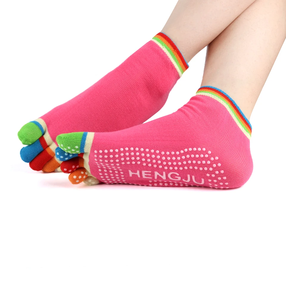 Название: Новый Для женщин Йога носки противоскользящие носки с пальцами, с низким вырезом на спине хлопок силиконовые Нескользящие 5 носком; Сезон Зима; женские носки балет тренажерный зал calcetines dedos
