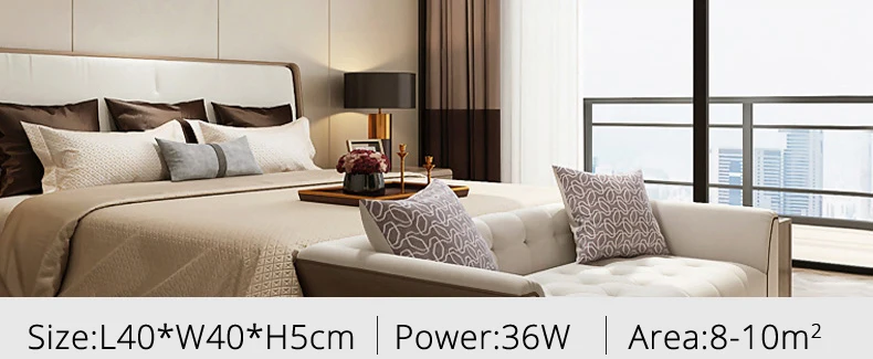 Мощность: 36 Вт 52 Вт Материал: железо + акрил + алюминий Размер: L40xW40xH5cm 36 w площадь: 8-10 ㎡ Размер: L50xW50xH5cm 52 w площадь: 10-15 ㎡ Цветовая температура: теплый свет/белый свет/ Яркость с регулируемой яркостью Напряжение: AC90-260V Способ установки: поверхностное крепление Срок гарантии: 2 года Примечание: Теплый свет: без пульта дистанционного управления, не- С регулируемой яркостью Белый свет: без пульта дистанционного управления, не- С регулируемой яркостью Яркость затемнения: с пультом дистанционного управления ( Без батареи), это означает, что свет может Контроль цвета и яркости лампы