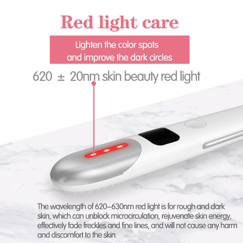 * Материал: АБС-пластик * Цвет: белый, розовый * Номинальное напряжение: 5 В * Номинальная мощность: 3 Вт * Красный светильник Длина волны: 620нм ± 20нм * Температура нагрева: 42 ℃ ± 2 ℃ * EMS ток: до 30 μa * Номинальный ток: 450мА * Емкость аккумулятора: 500 мА * Время работы: более 90 минут * Время зарядки: около 2 часов * Размер изделия: прибл. 160*30*19,5 мм/6.29x1.18x0.76in