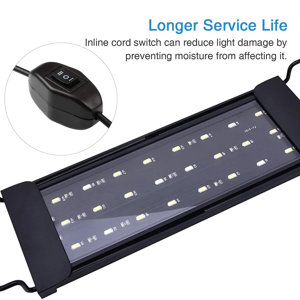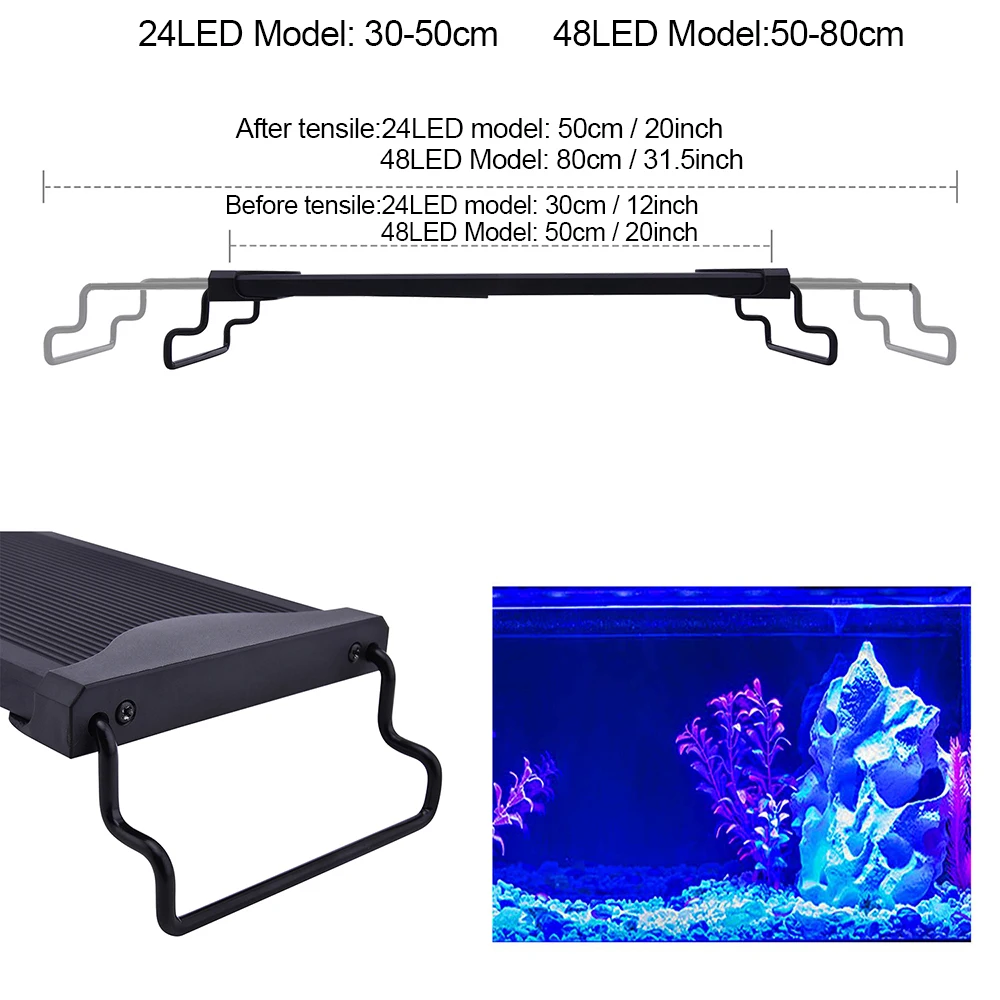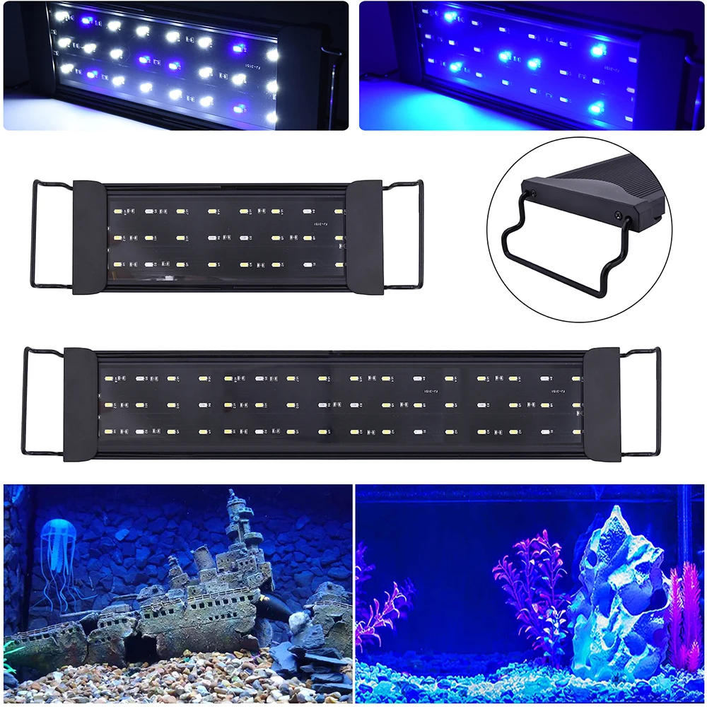 Супер яркий светодиодный аквариумный светильник 12 Вт 24 Вт, светильник для аквариума, травяная лампа для 30-80 см/12-31,5 дюйма, растительный аквариум, белый теплый белый синий светильник