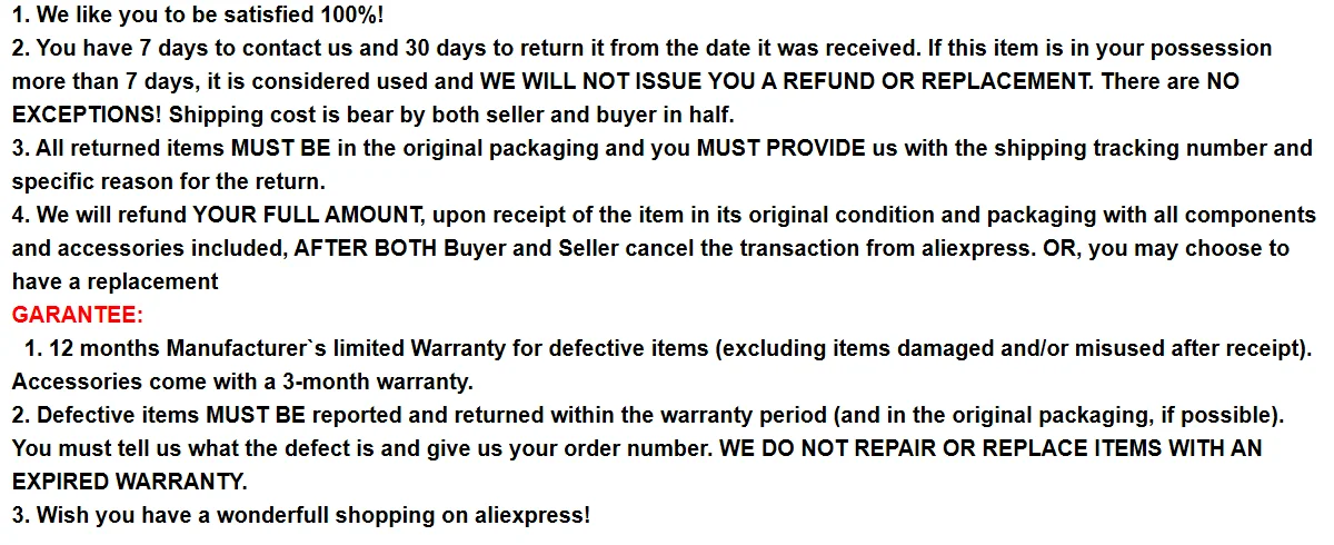 Ваше удовлетворение и положительные отзывы очень важны для нас, пожалуйста, дайте нам 5 звезд, если вы удовлетворены платьем, пожалуйста, свяжитесь с нами, если есть какие-либо проблемы. Вы можете отправить электронное письмо Или поговорите с нами онлайн, на все электронные письма будет дан ответ в течение 1 рабочего дня. Если вы не получили наш ответ, пожалуйста, отправьте письмо повторно, мы ответим вам как можно скорее