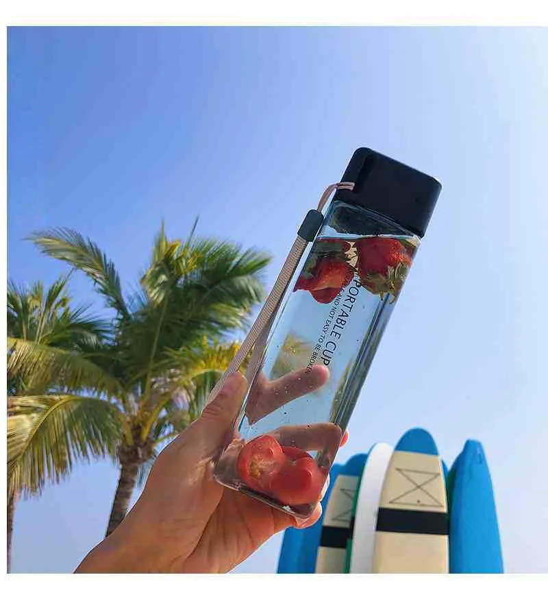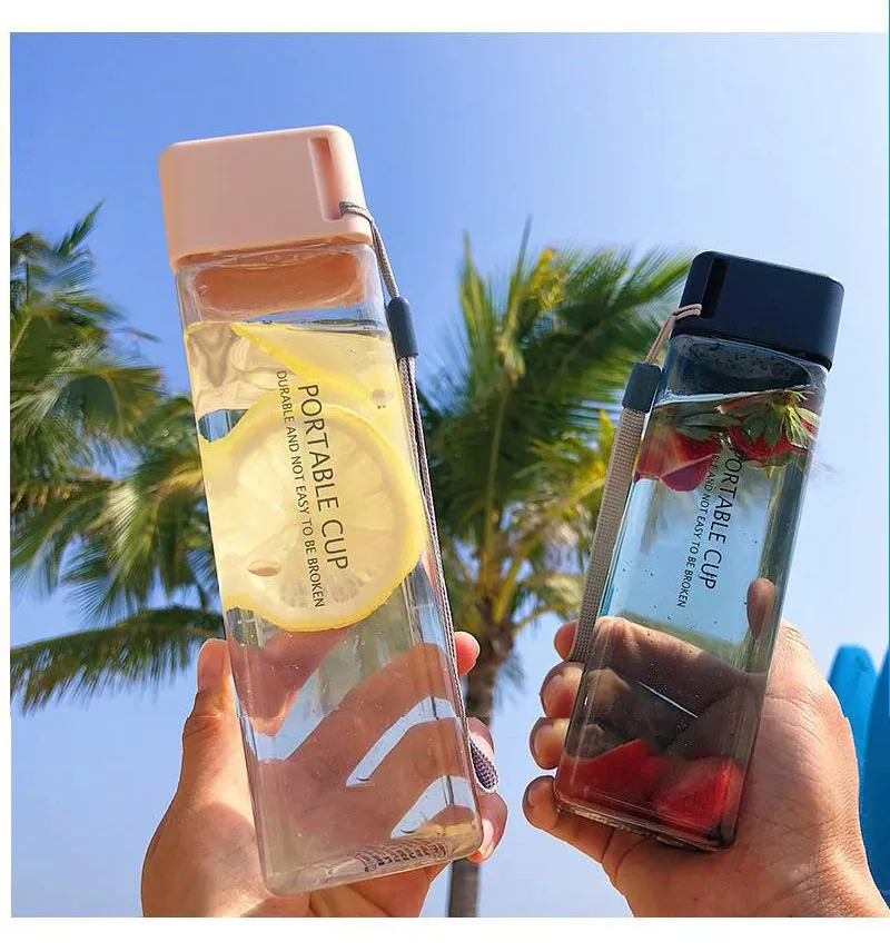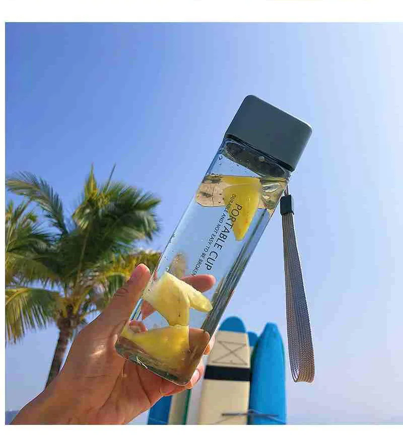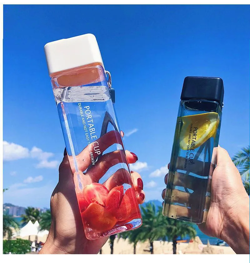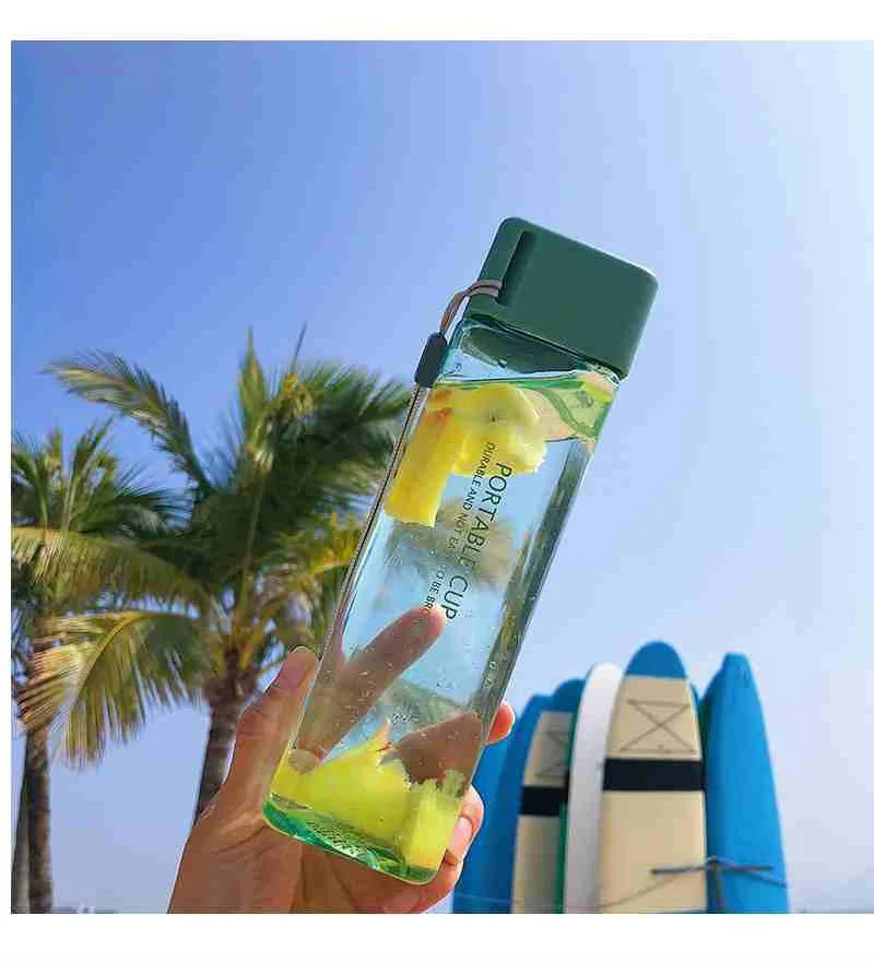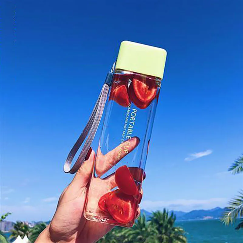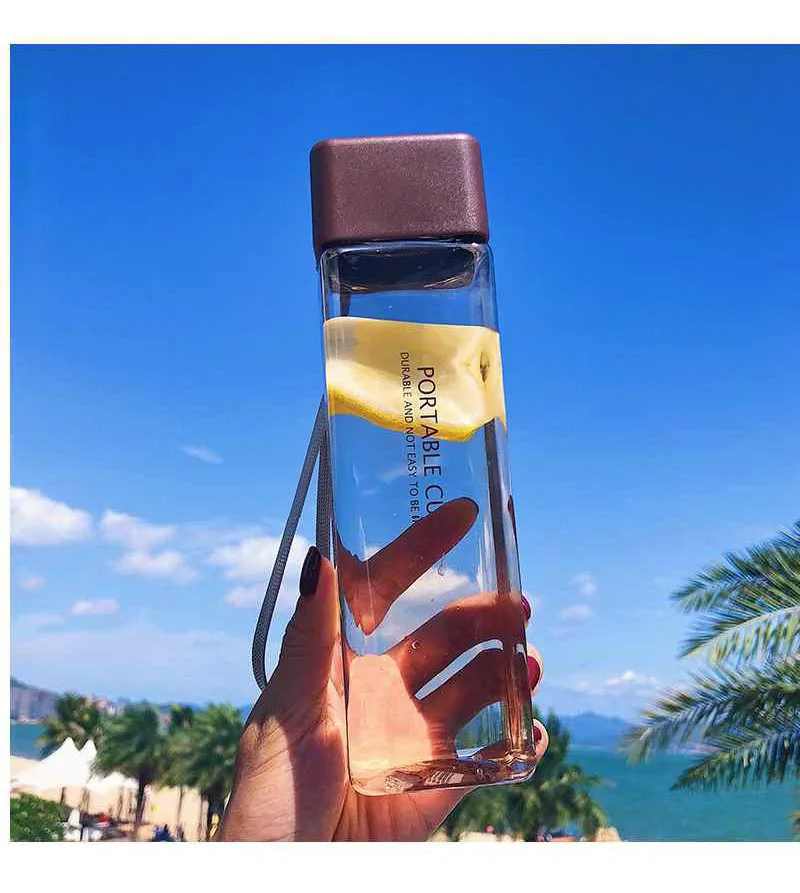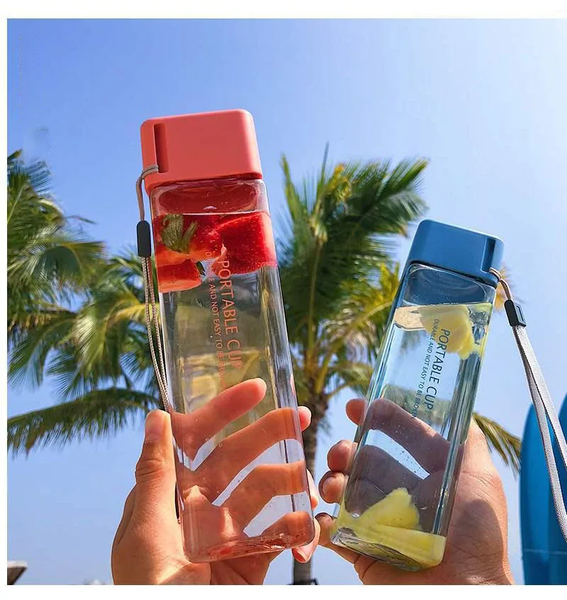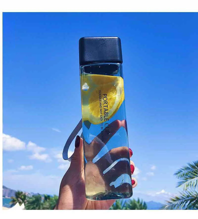 Новая квадратная пластиковая бутылка My Bottle 500 мл для бутылок для воды для напитков с веревкой прозрачная или матовая Спортивная Корейская стильная термостойкая