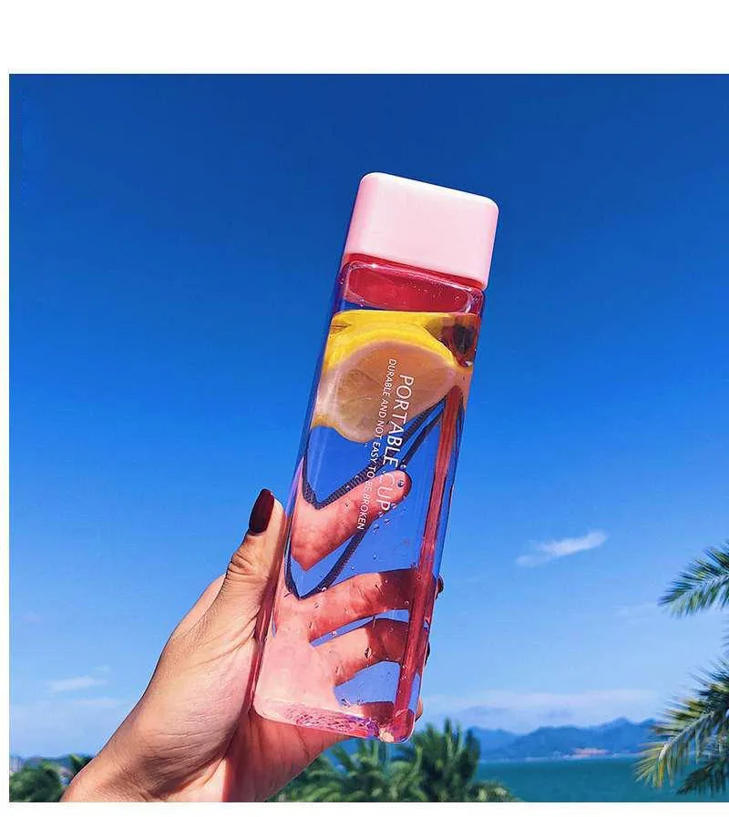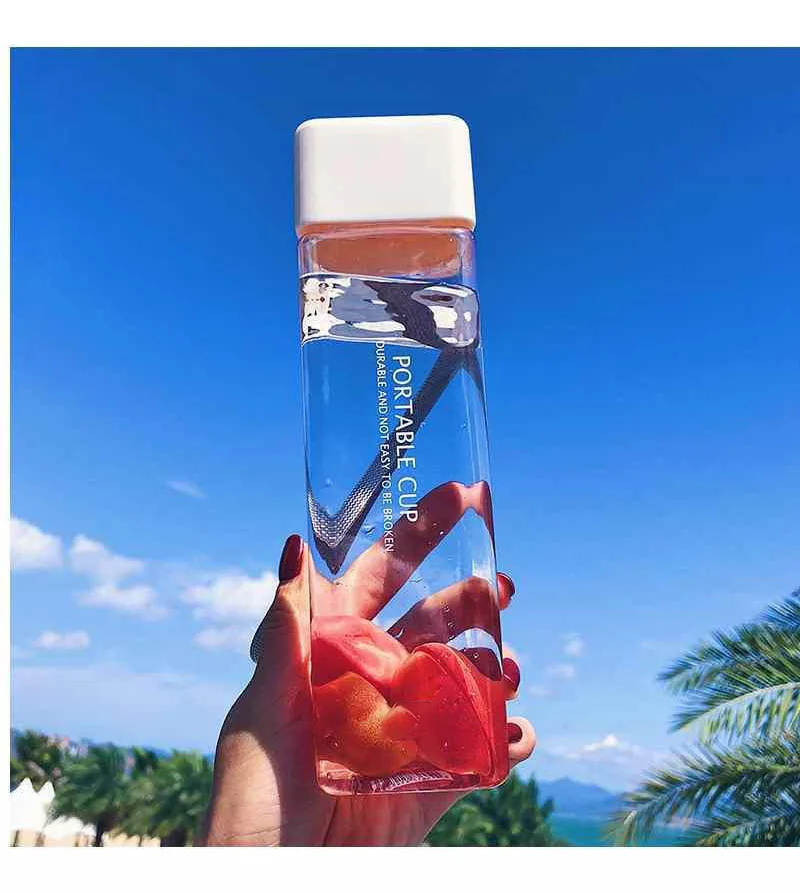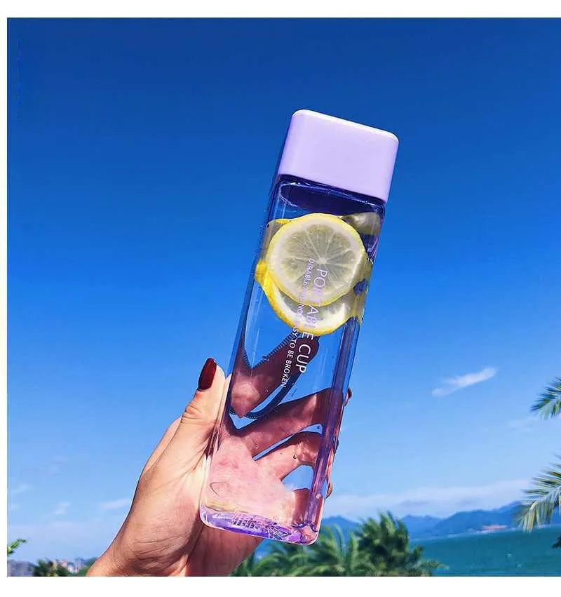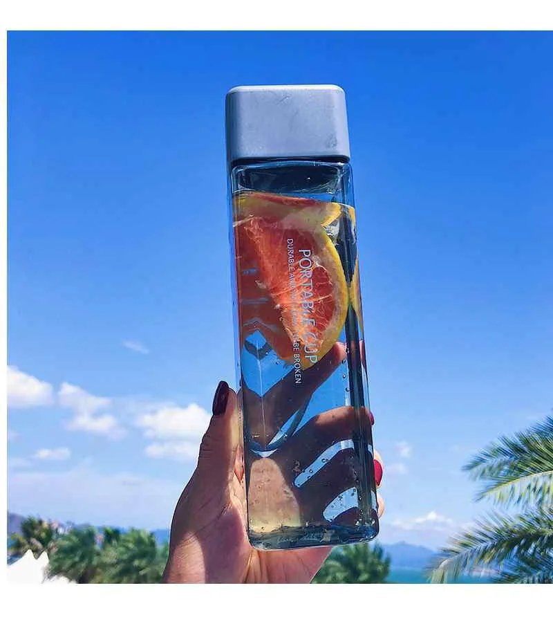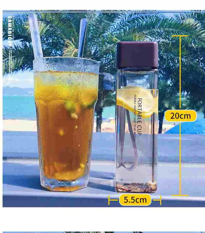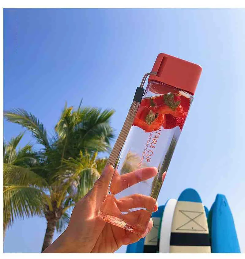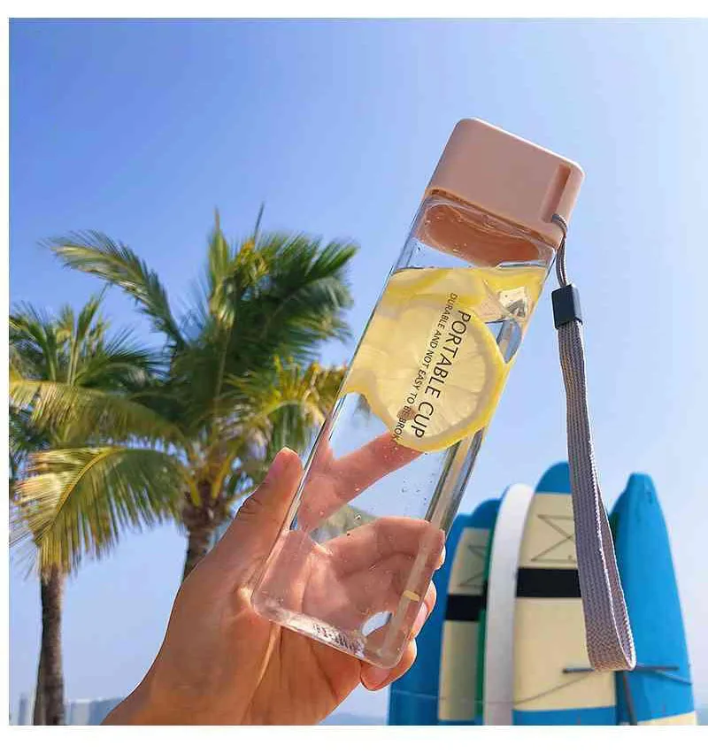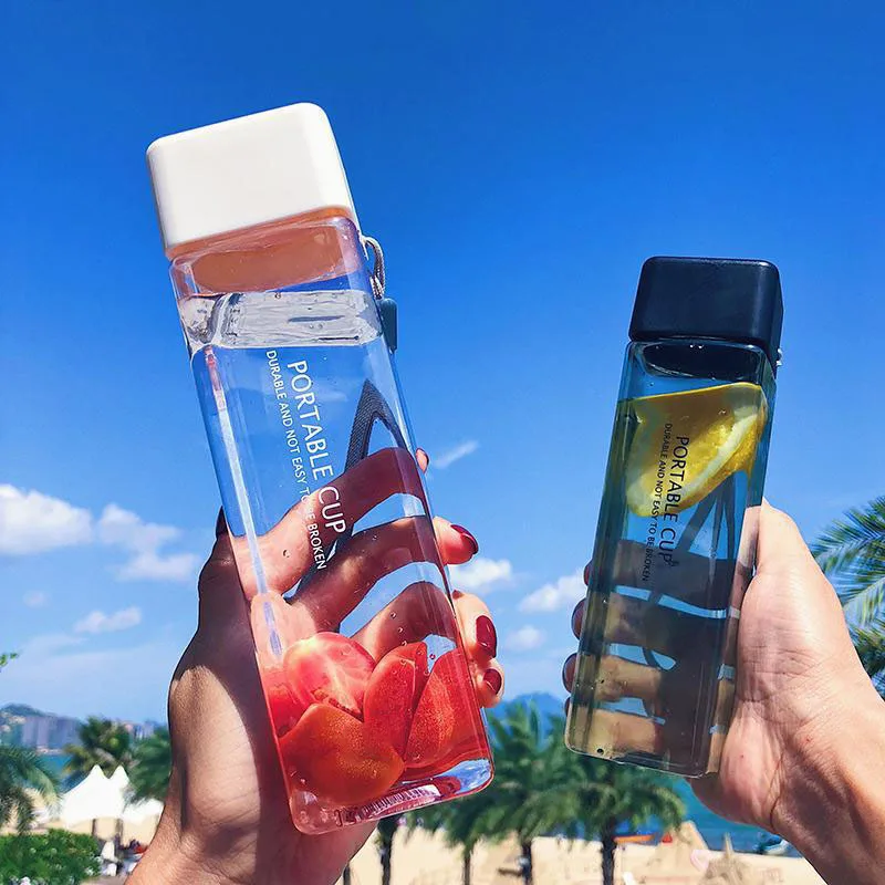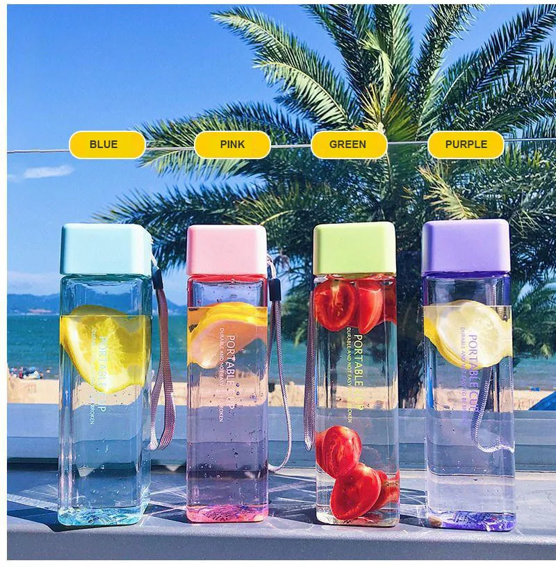 Новая квадратная пластиковая бутылка My Bottle 500 мл для бутылок для воды для напитков с веревкой прозрачная или матовая Спортивная Корейская стильная термостойкая