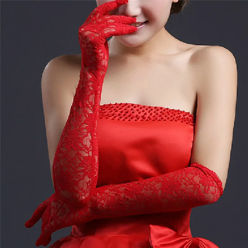 1 пара, белые свадебные перчатки цвета слоновой кости для женщин и девочек, длина до локтя, кружевные перчатки с полным пальцем, элегантные свадебные перчатки, свадебные аксессуары