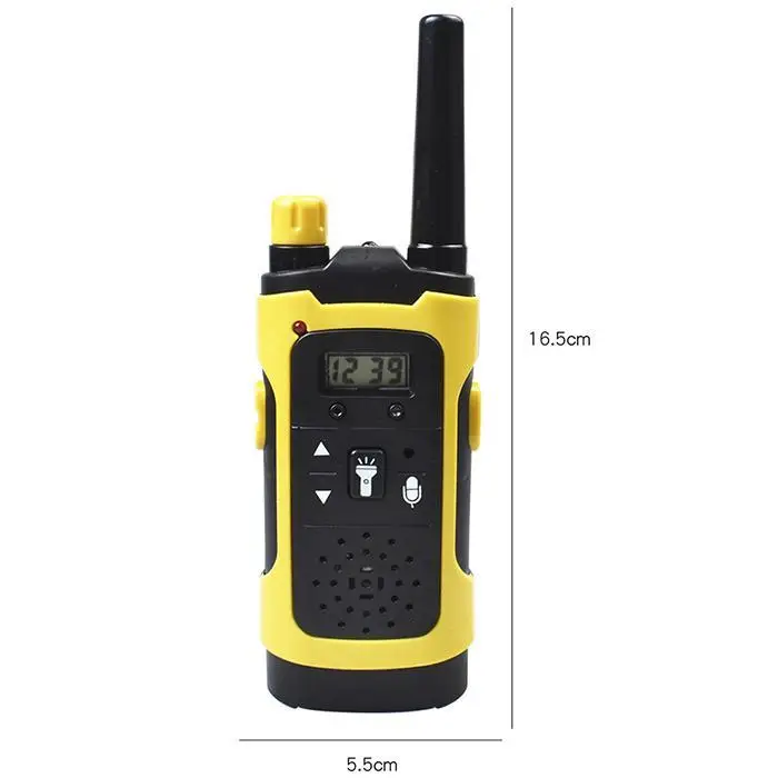 Material: ABS Color: Yellow/Red Pack Size: 20.00 x 10.00 x 10.00 cm/7.9 x 3.9 x 3.9 inch Type of battery: Dry Batteries(not included) Function: Music/sound, flash Intercom distance: 200m or more Quantity: 2Pcs/Pair Age Range: Over 3 Years Old Features: Made from environmental and durable materials. The product has very smooth edges in result in no scratch injure for kids hand. Easy to carry, small, and simple. It has a variety of playing patterns. Discrete and fun, also effective for focus and deep thought. Help your child quitting bad habits, staying awake. Warning: Not suitable for children under the age of three. Package Content: 1 x Pair of Walkie Talkie Note: Due to the difference between different monitors, the picture may not reflect the actual color of the item.1cm=0.3937inch