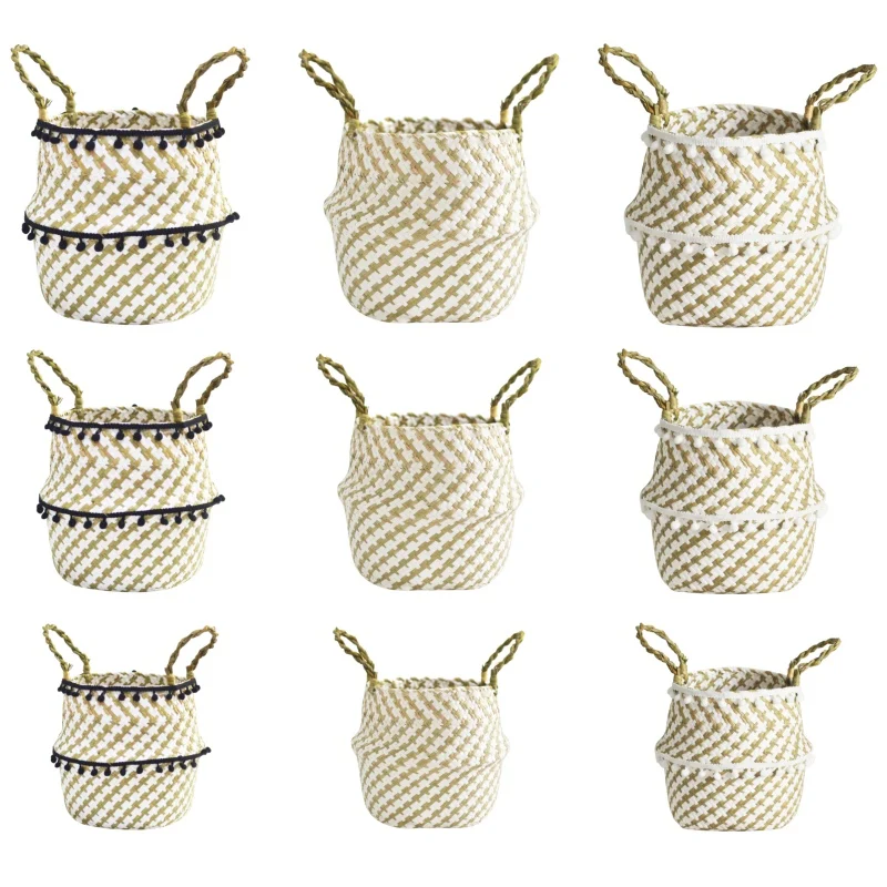 Тип товара: бамбуковая корзина для хранения Материал: тропическая морская трава Размеры 22 см: Диаметр 22 см х высота 20 см Размеры 27 см: Диаметр 27 см x высота 24 см Размеры 32 см: Диаметр 32 см x высота 28 см Примечание:Самый широкий диаметр корзины-22 см/27 см/32 см. Он может вместить одеяло, одежду, книги. Его можно использовать как корзину, цветочный горшок, сумочку, необходимые украшения для дома.