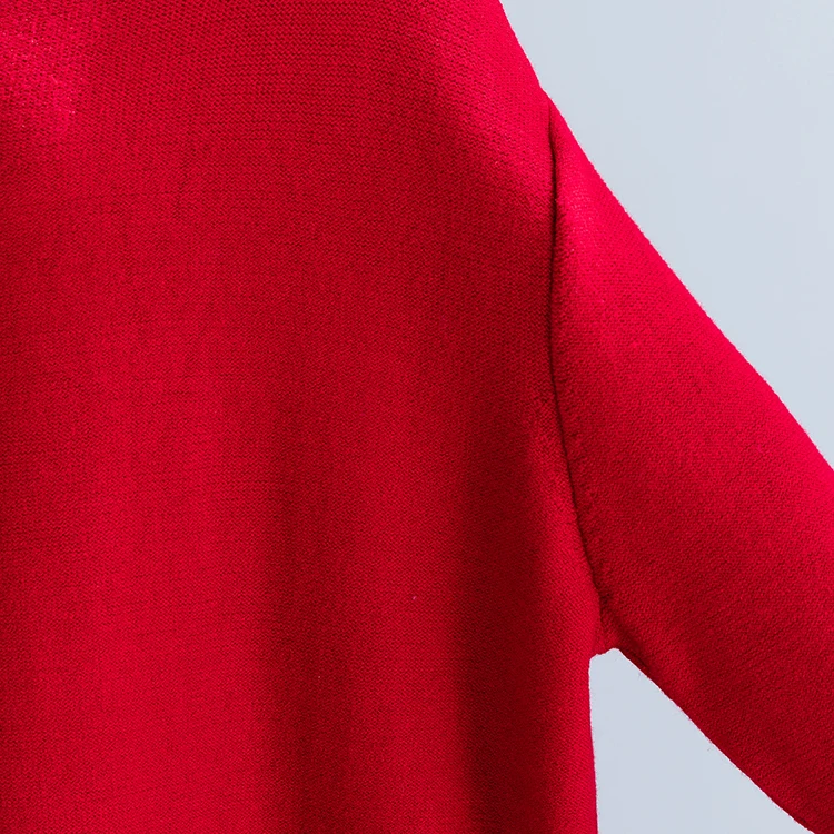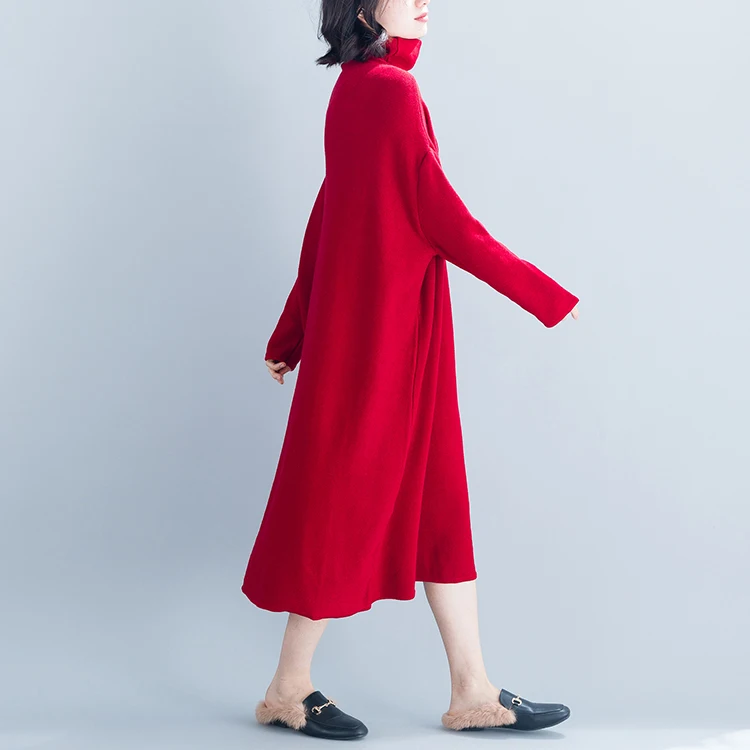 Женское трикотажное платье-свитер с высоким воротником, повседневное Свободное платье с длинным рукавом размера плюс Красного цвета, зима-осень 2020