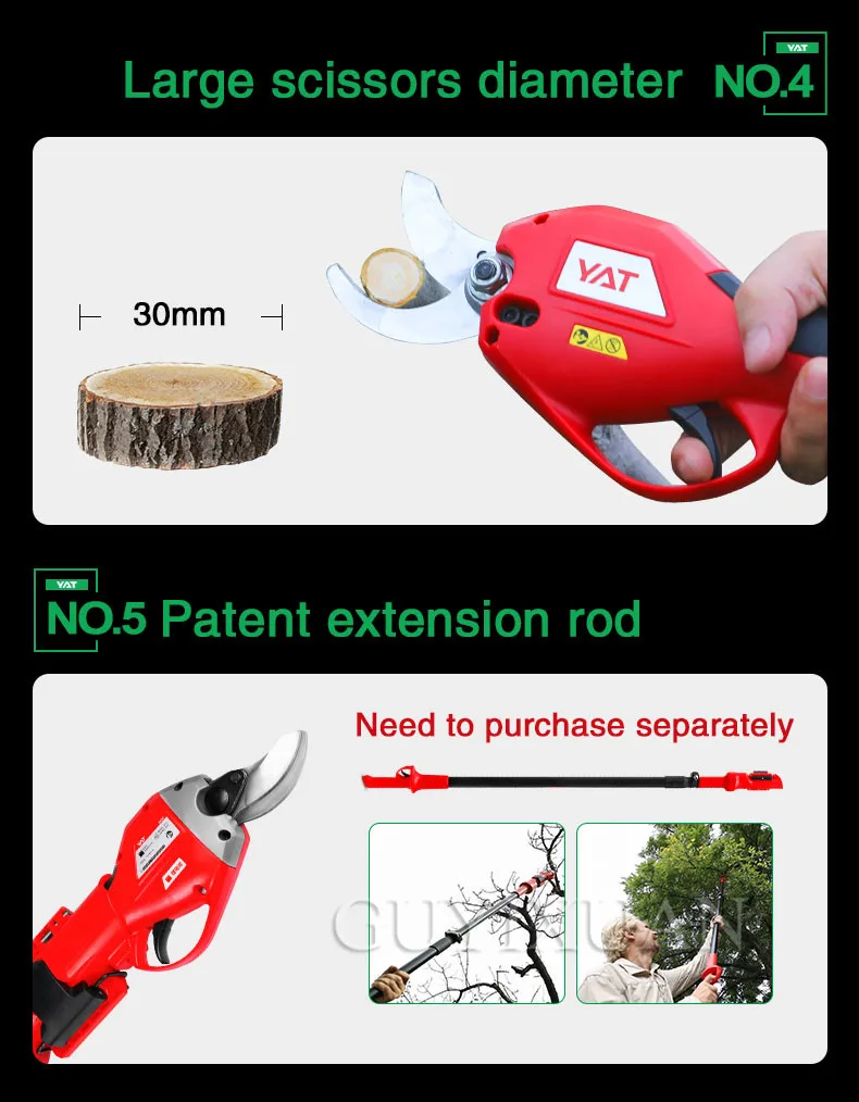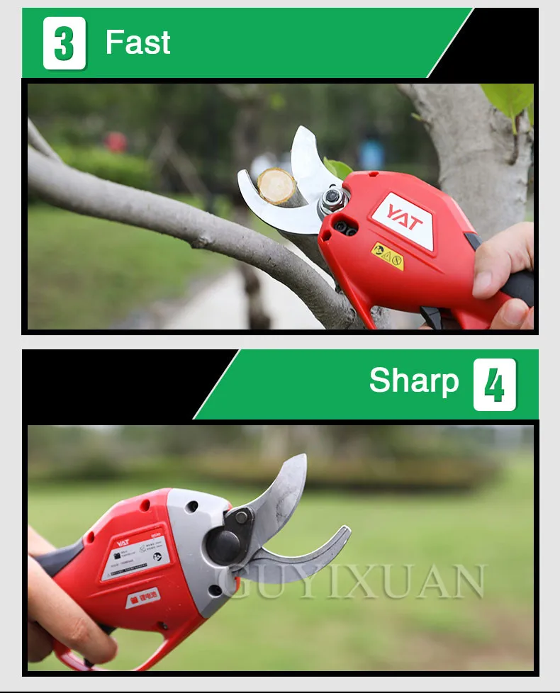 Бренд: GUYX Модель: YT6502 Источник питания: литиевая батарея Напряжение: 24 В Емкость аккумулятора: 4,0 Ач Зарядка: 3 ч Диаметр обрезки жесткой ветки: ≤ 20 мм Обрезка мягкой ветки диаметр: ≤ 30 мм Открытие лезвия: ≤ 53 мм Вес инструмента: 0,95 кг Упаковка: 380*340*115 мм
