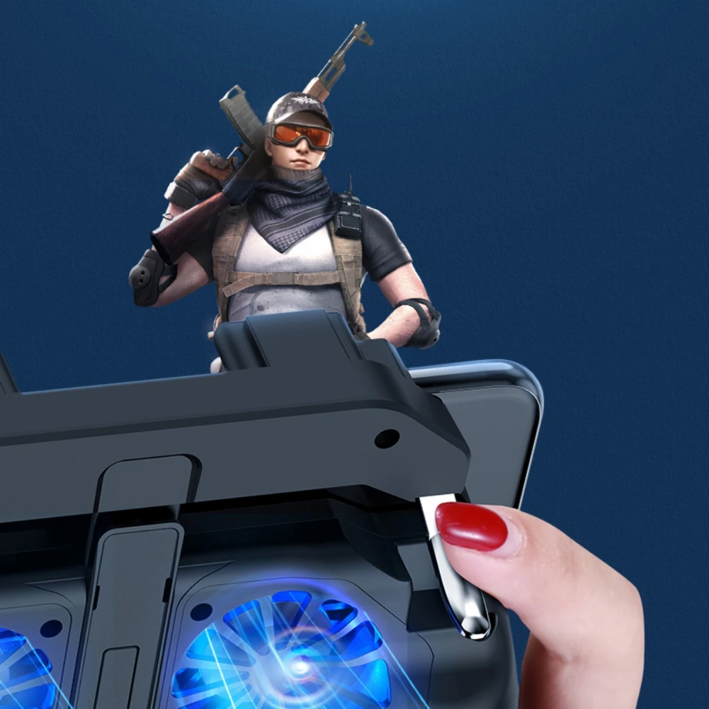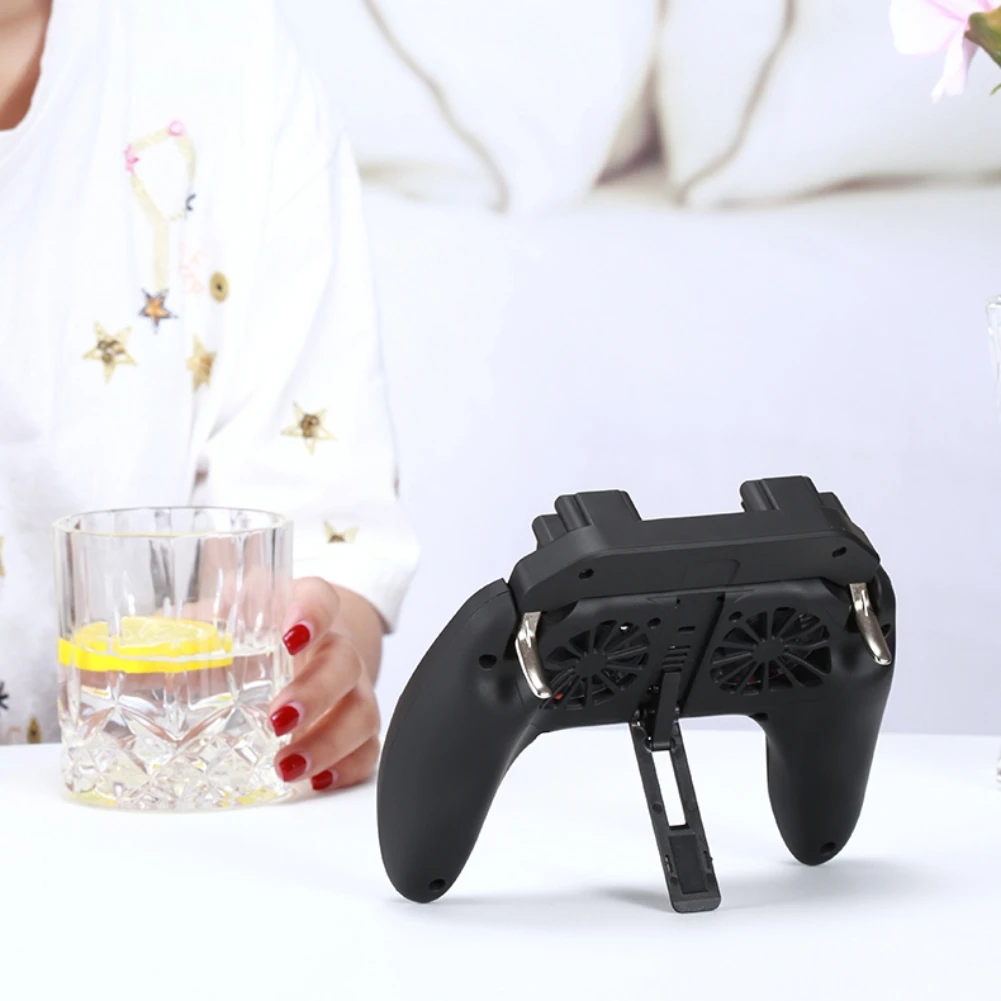 Характеристики: 1. Быстрое Охлаждение: оснащен 2 вентиляторами охлаждения, чтобы ваш мобильный телефон всегда был в низкотемпературном рабочем состоянии. 2. Эргономичный дизайн: простой, простой и естественный; Гарантированное удобное сцепление; Устойчивый для длительного использования. 3. Быстрая съемка: максимум 16 снимков в секунду скорость съемки происходит от улучшенной оптимизации; Высокая чувствительность гарантирована. 4. Простота в использовании: кнопка очень маленькая и позволяет вращать не тот экран без препятствий или блокировки; Не оказывает негативного воздействия на игры. 5. Долговечность: чтобы обеспечить вам длительный срок службы, мы использовали первоклассный ABS и металл для этого контроллера. Характеристики: Товар: устройство для мобильного геймпад; Цвет: черный Материал: АБС-пластик и металл применимые модели телефонов: 4,7-6,5 дюйма Вес: 180g Мощность поставки: Отводная труба вентилятор охлаждения: 2 Эргономичный дизайн: Да комплектация: 1 х контроллер мобильной игры