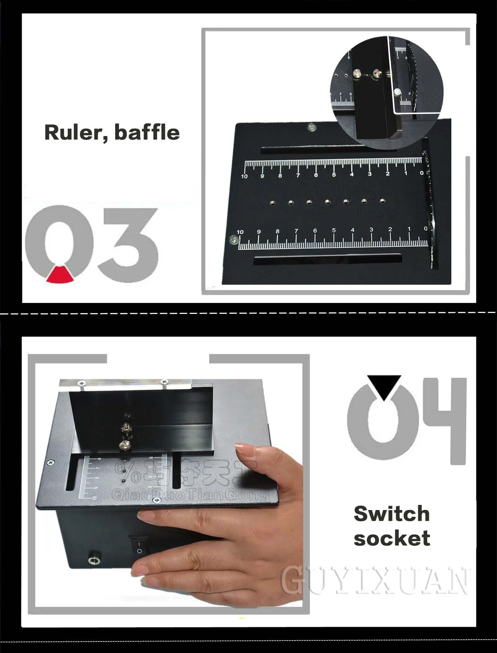 Название: микро Настольная пила Размер внешнего вида: 22 см * 16 см * 8,5 см Диапазон напряжения: 12 ~ 24 В Толщина резки: 18 мм Диапазон тока: более 3.5A Материал резки: деревянная доска акриловая печатная плата ПВХ Материал корпуса: [все металлические] холоднокатаная стальная пластина, алюминиевый сплав Скорость холостого хода: 5000 об/мин Диаметр пильного диска: 85 мм Вес нетто: 2,46 кг (без адаптера питания) Примечание: При использовании поместите пилу на стол, удерживайте предмет, который нужно разрезать, и медленно прижмите его вперед к перегородке.