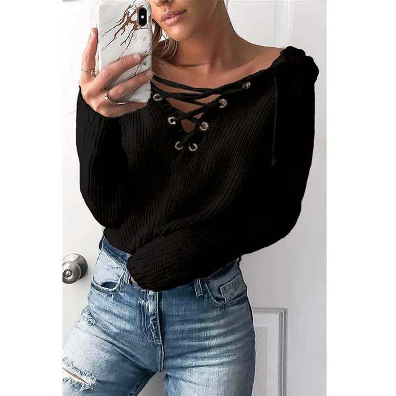 Women Winter Baggy Lace Up Coat Chunky Knitted Oversized Hooded Sweater Jumper