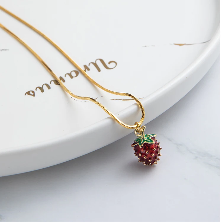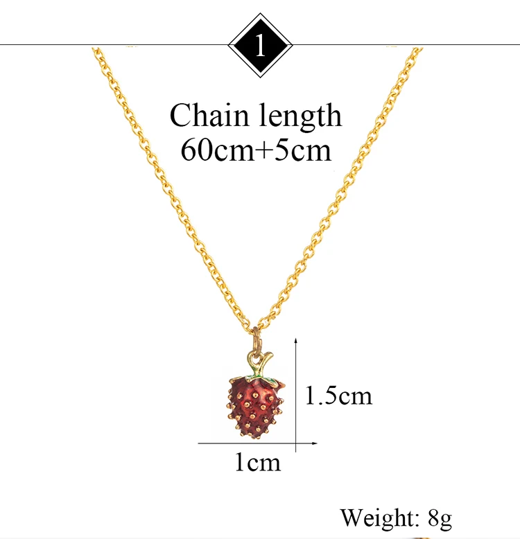 Подвеска чокер эффектная уникальная цепочка с подвеской Женская клубника змея модная цепочка 2019 подвеска колье ожерелье ювелирные изделия Материал: сплав Тип цепи: звеньевая цепь/змеиная цепь Длина звеньев цепи: 60 + 5 см Длина змеиной цепи: 44 + 6 см Размер подвески: 1,5*1 см