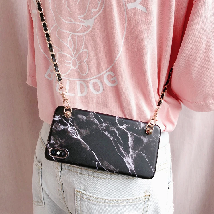 Уникальный мраморный гранитный чехол с длинной цепочкой для iPhone 11 12 PRO XS MAX XR 8 7 Plus Huawei P30 PRO Mate 20