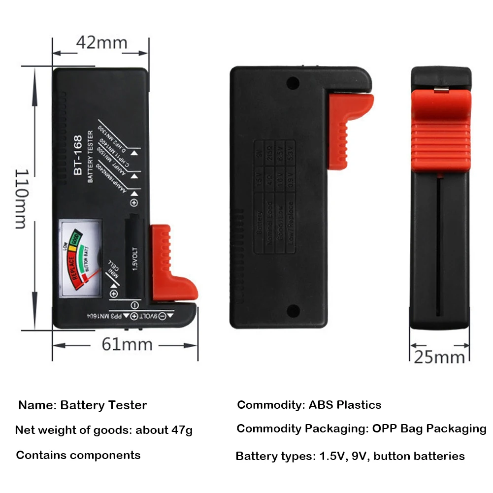 1 шт. х тестер батареи (батарейки в комплект не входят)