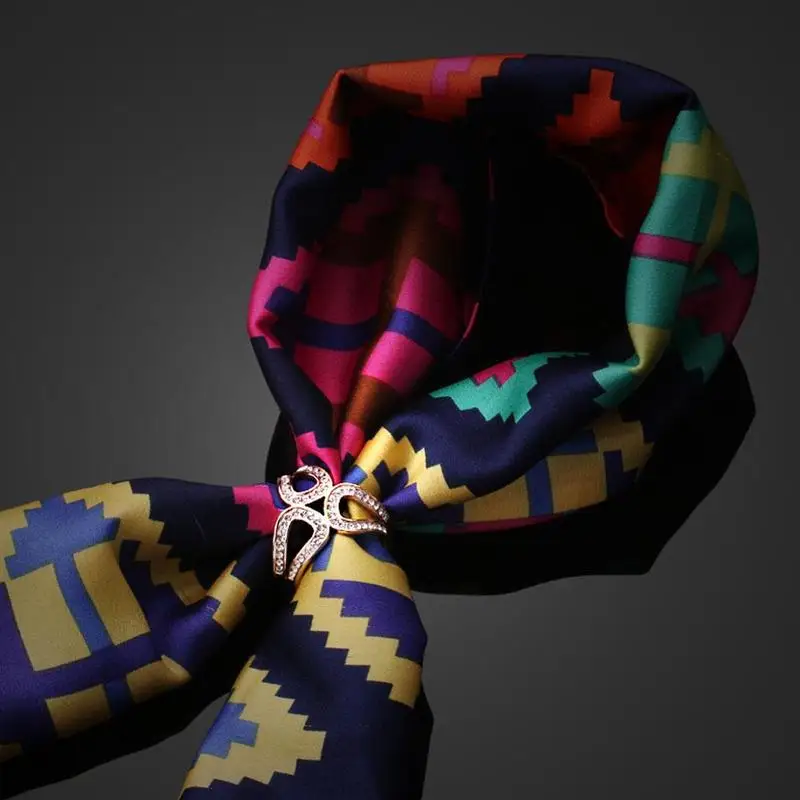 Корейская версия, хит продаж, изысканный Шелковый шарф с тремя кольцами, Женская шаль с пряжкой, аксессуары в этническом стиле, Цветочная стюардесса, ювелирные изделия