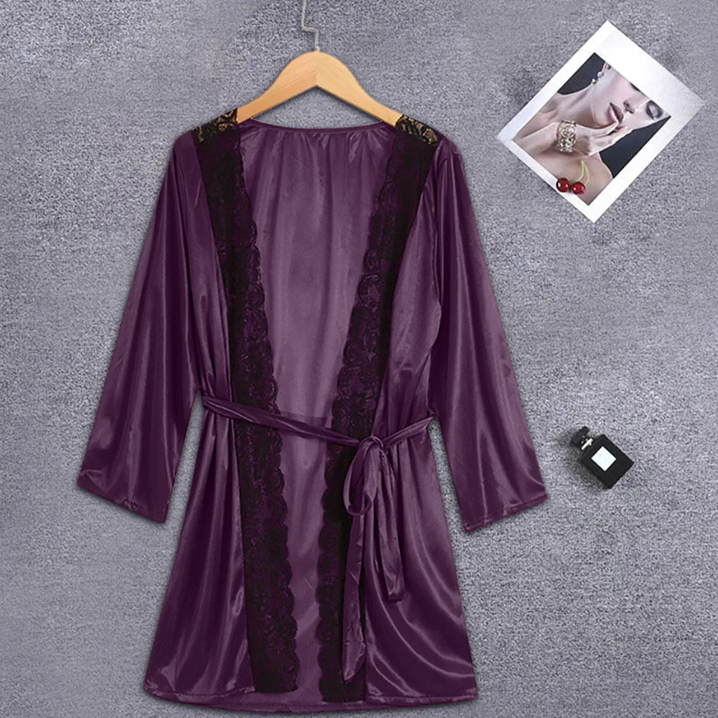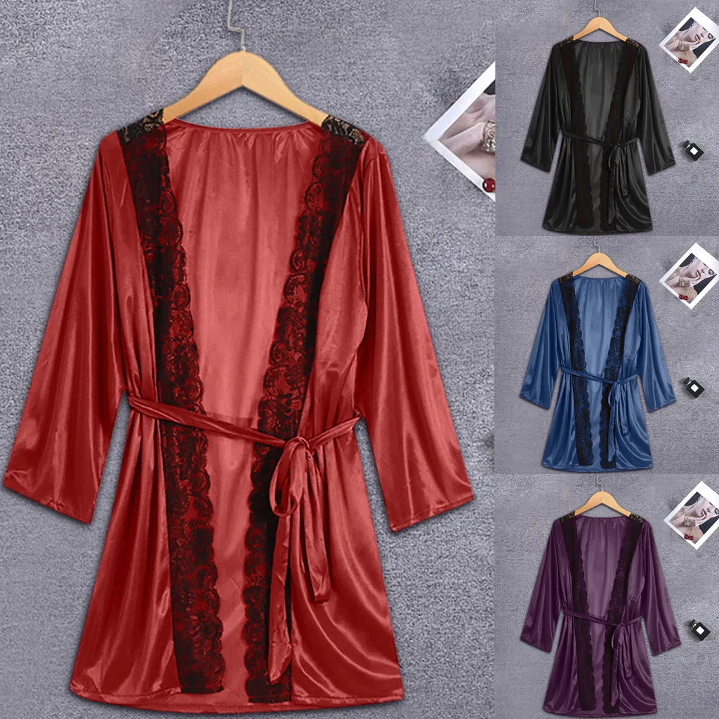 Сексуальная кружевная ночная сорочка, модная Женская Удобная Однотонная ночная сорочка, халат с поясом, одежда для сна, Batas Para Dormir Mujer, новинка 2019, хит продаж 1