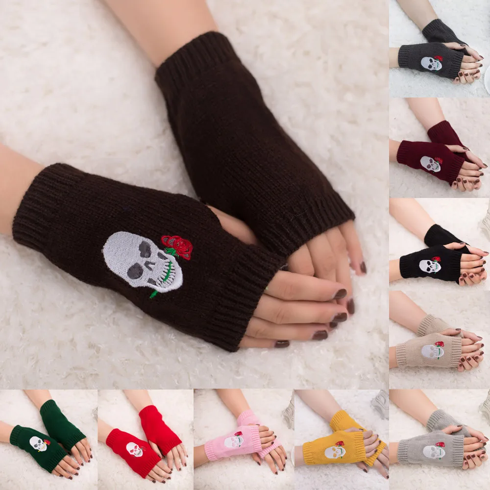 1 пара Женские вязаные теплые перчатки, зимние перчатки без пальцев, мягкие теплые варежки (NO Розничная коробка. Безопасно упаковывается в пузырчатую сумку)