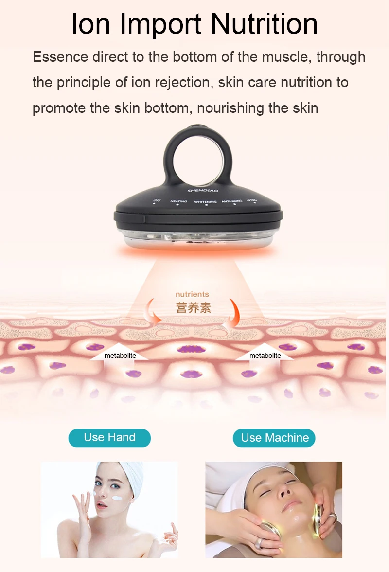 Научная 42 степень чувствительности пробуждает кожу, стимулирует увеличение внутриклеточного протеина теплового шока, уменьшает выработку коллагеновых веществ, производит коллаген, подавляет выработку морщин. Массируйте кожу микровибрацией от 125 до 250 Гц, поддерживая кристально чистую кожу, стимулируя кожу для поглощения активных ингредиентов продуктов по уходу за кожей, стимулируя кровообращение для улучшения кровотока. Микротоковая Ион импорта, три скачков напряжения и питания улучшить проблемной кожи: Jafani, таким образом, что для ухода за кожей Отбеливающий ингредиенты проникают в кожу глубокий; Светодиодный цвет терапии, с разными длинами волн светильник сегментации penetratedeep в кожу.