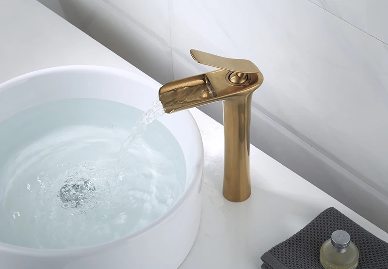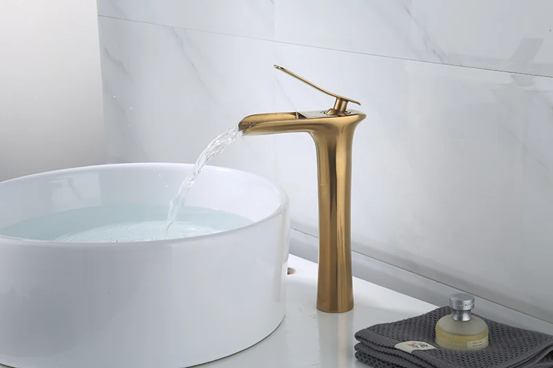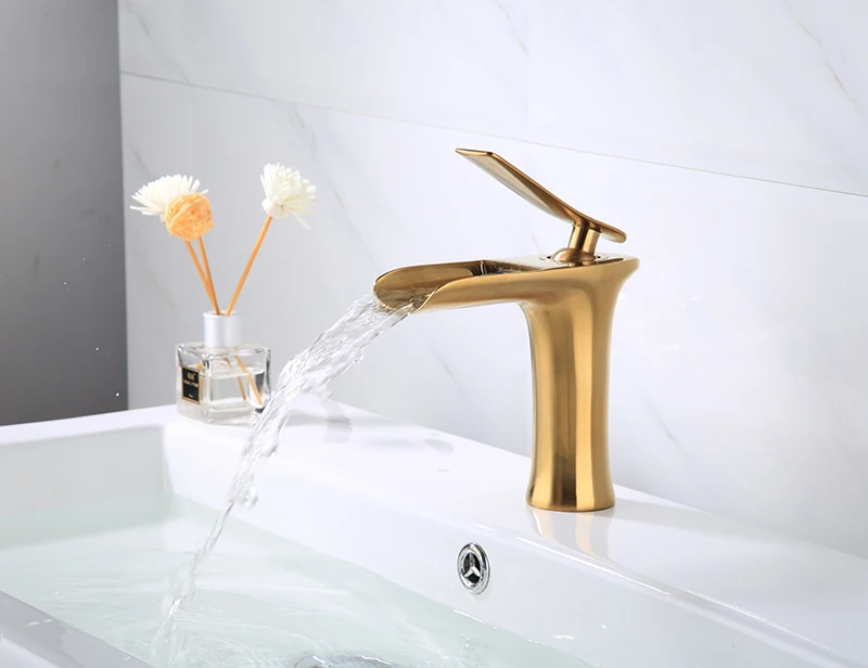 Ванная комната смесители для раковины кисти золотистыми латунными зубцами и раковина кран Водопад кран на одно отверстие холодной и горячей воды кран смеситель для кухни Torneira