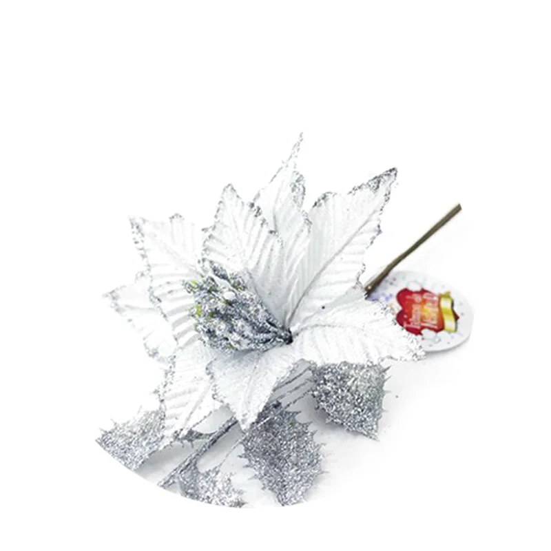2. Сверкающий, искусственный цветок с дизайном листьев, довольно реалистичный.