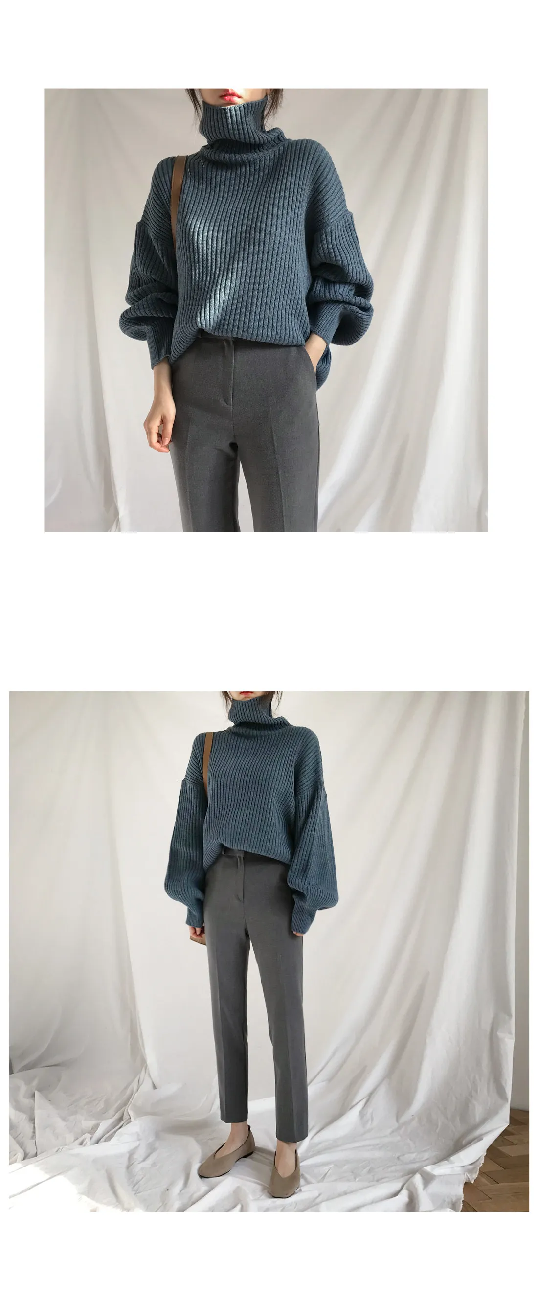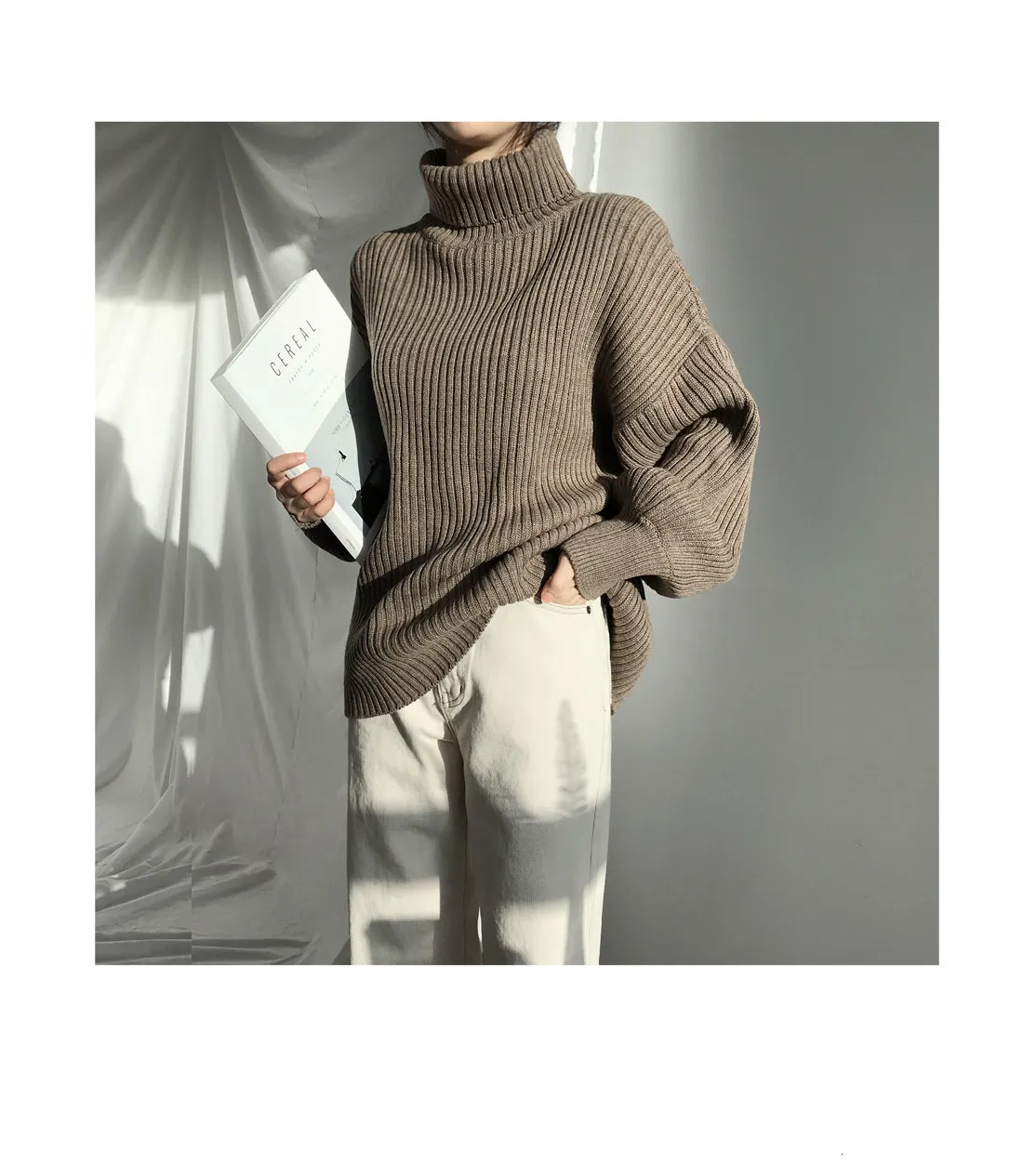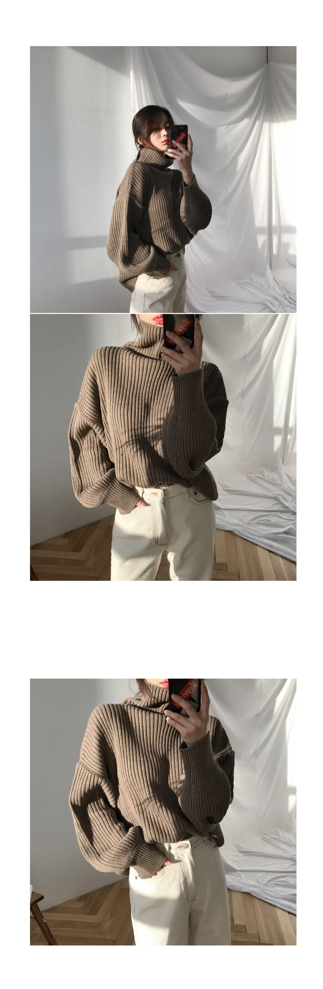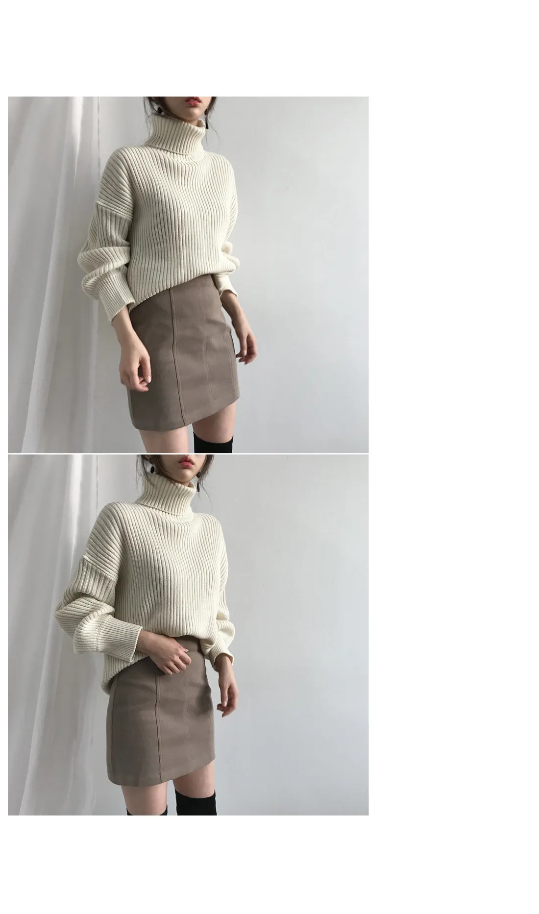 Женская одежда (свитер с высоким воротником, средней длины, плотный и ленивый, с длинными рукавами, вязаные свитера) была поднята на выбор компанией «Они ханфэн».
