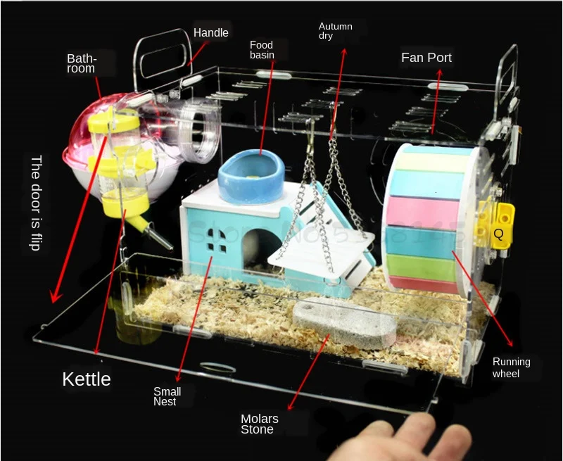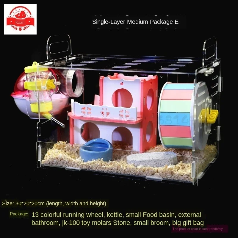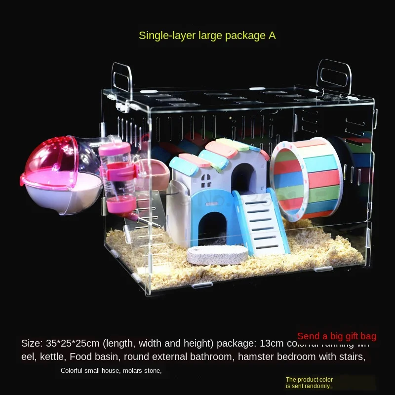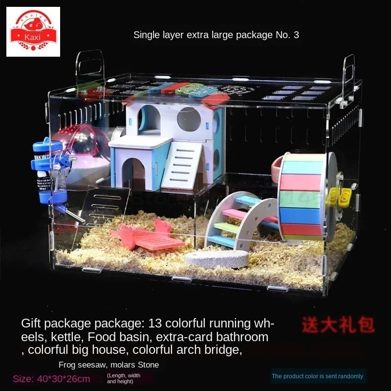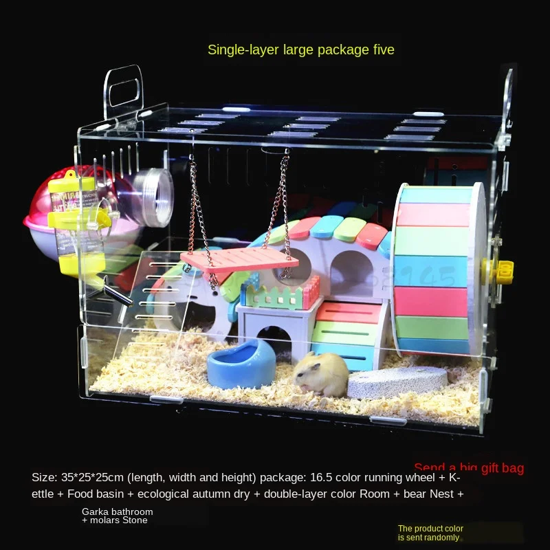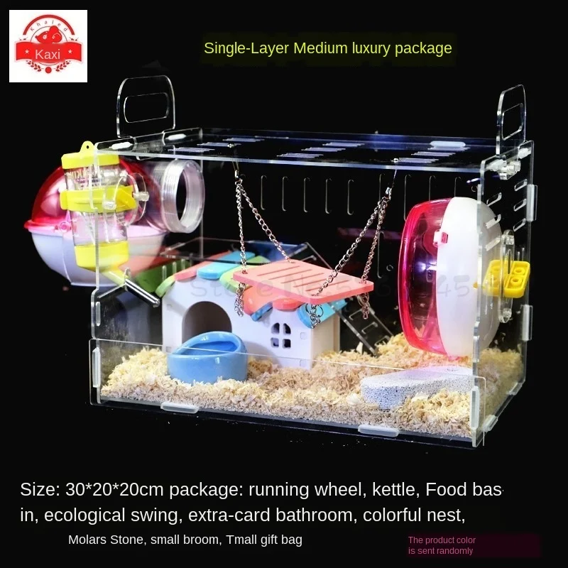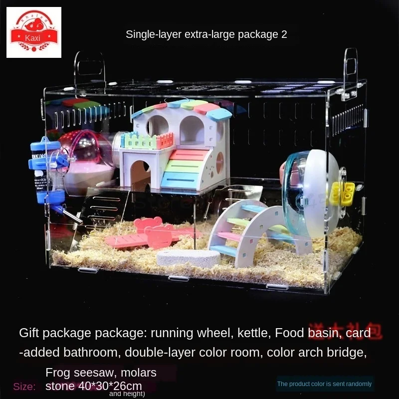 Клетка для хомяков, очень большая вилла, детский Золотой Шелковый медвежонок, однослойный, Двойные Прозрачные базовые принадлежности, игрушки