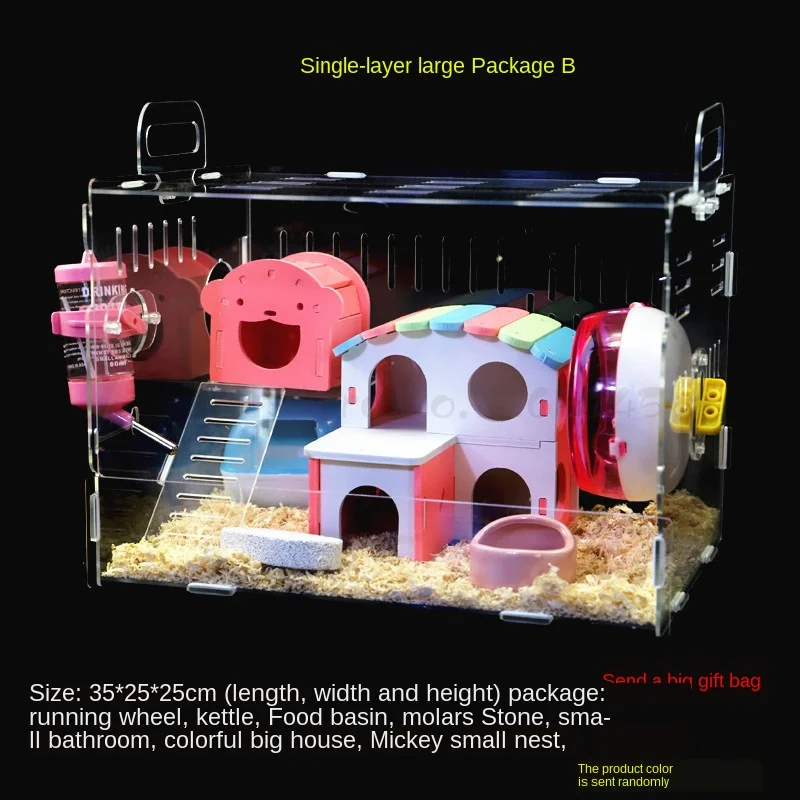 Прозрачная акриловая клетка для хомяков, большая вилла, маленький двухслойный одиночный изолирующий крыс