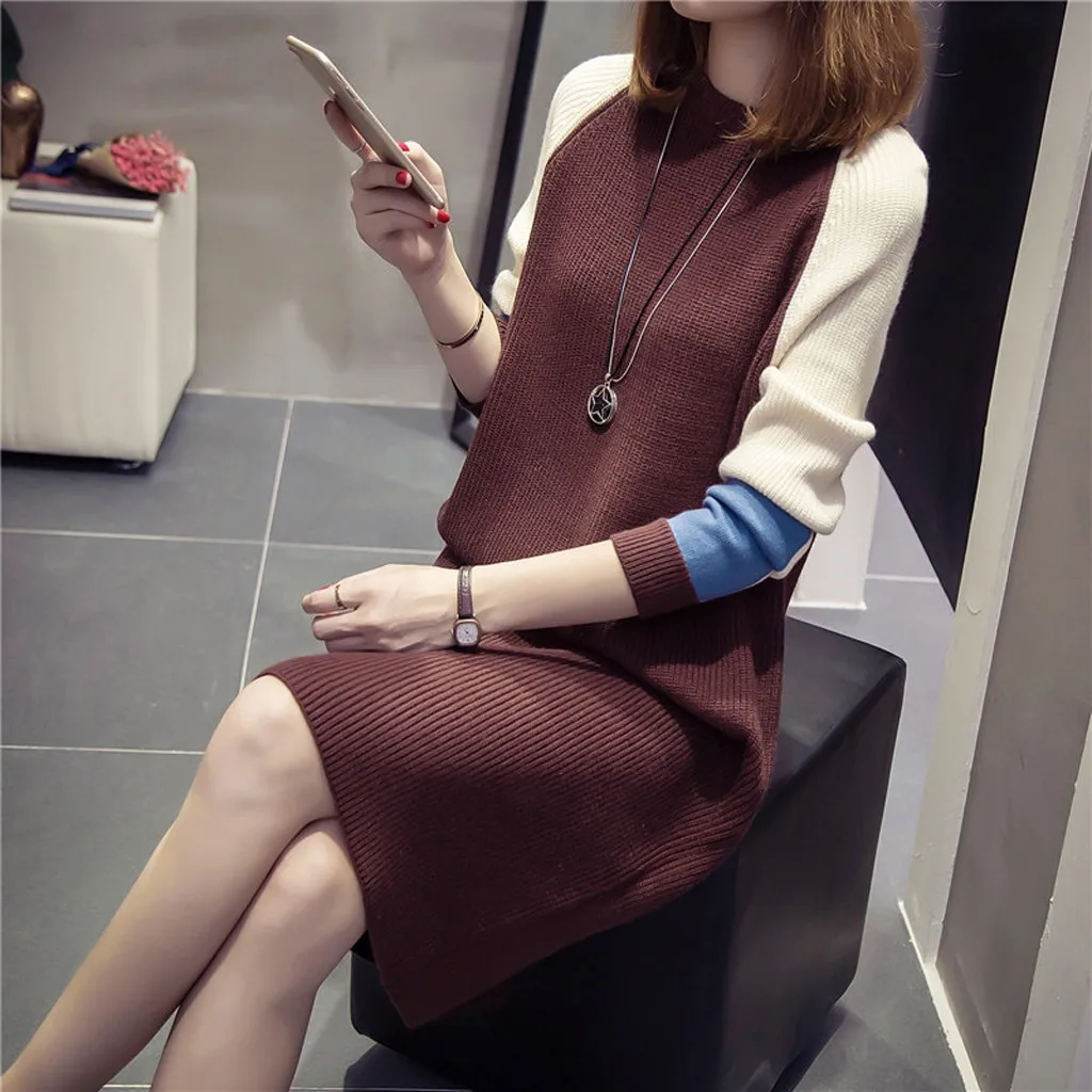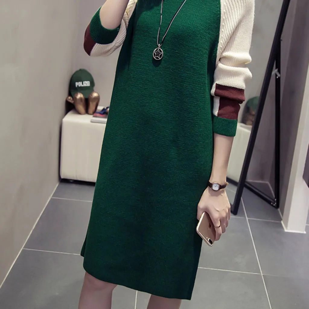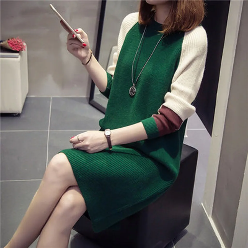 Женское осеннее модное корейское свободное платье, вязаный свитер с длинным рукавом, платья