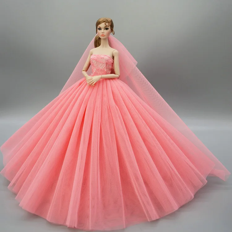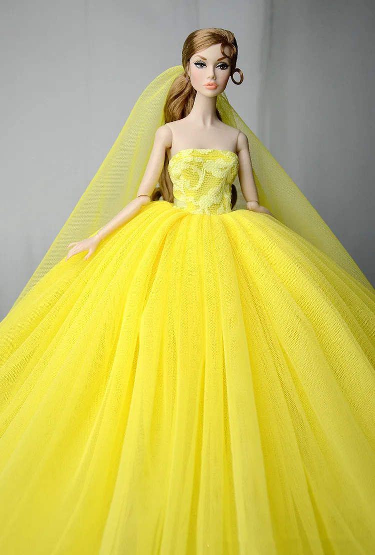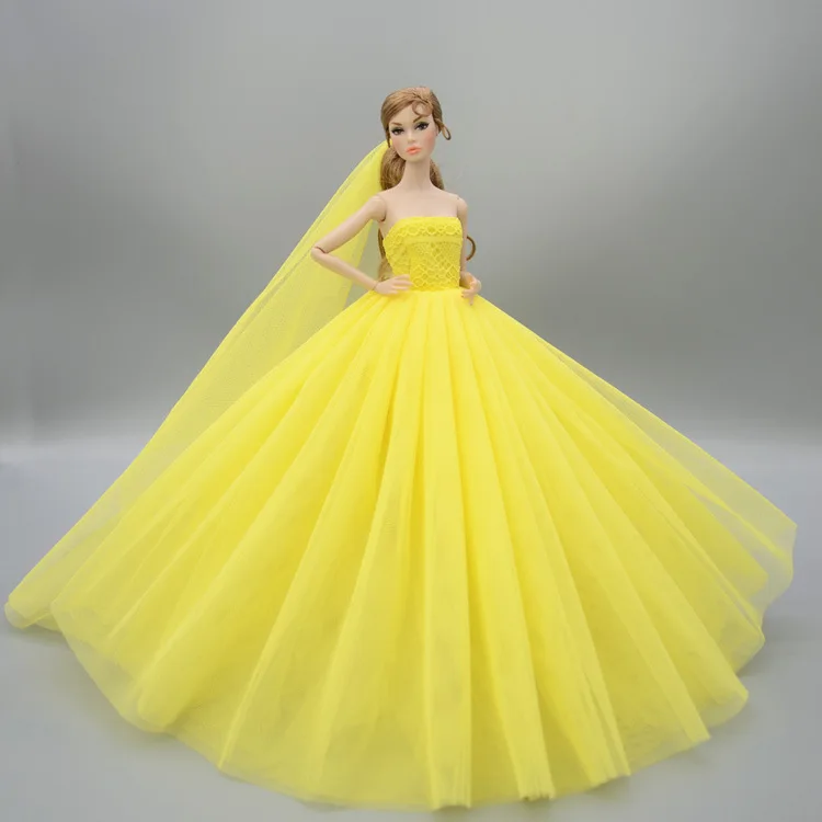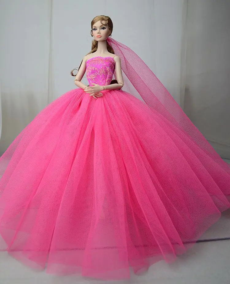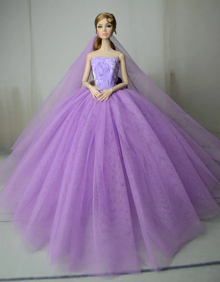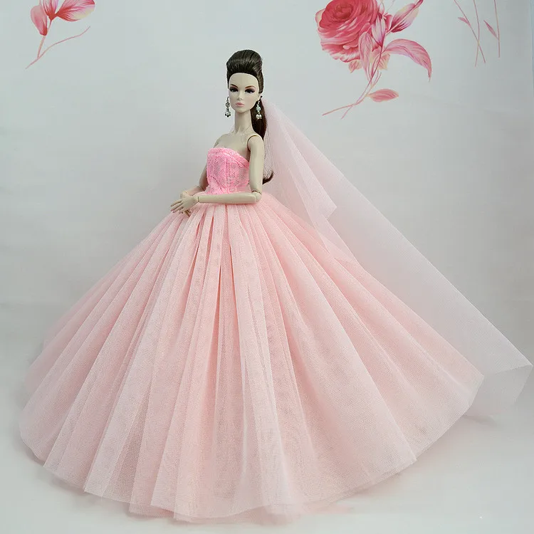Doll Dress With Veil Quality Lace Party Dress Evening Gown Bubble TUTU Princess Clothing Outfit Accessories For 1/6 Dolls